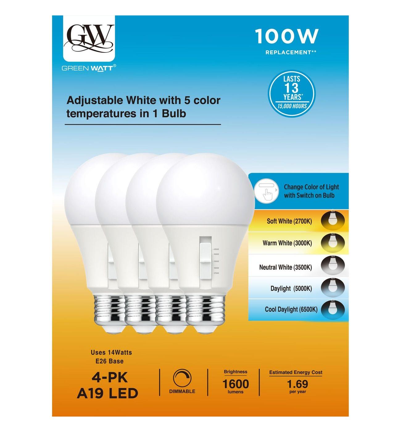 Green Watt A19 100-Watt A19 LED Dimmable Light Bulb
