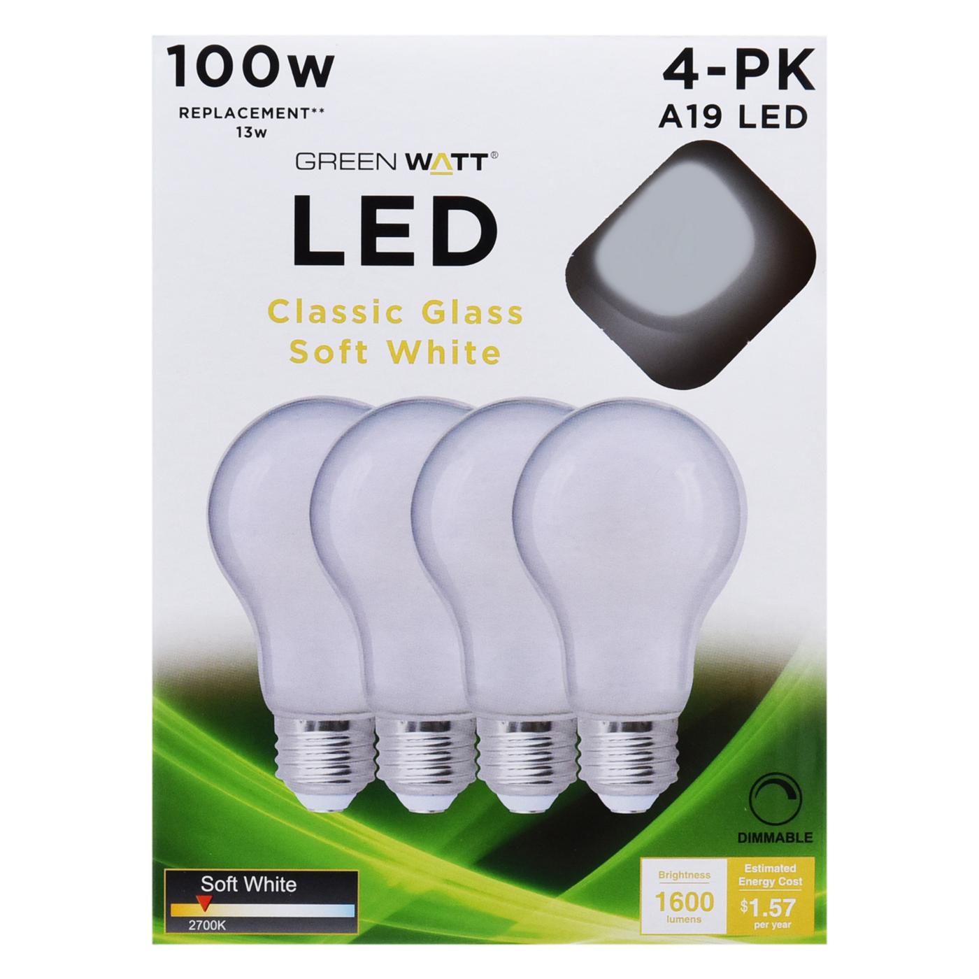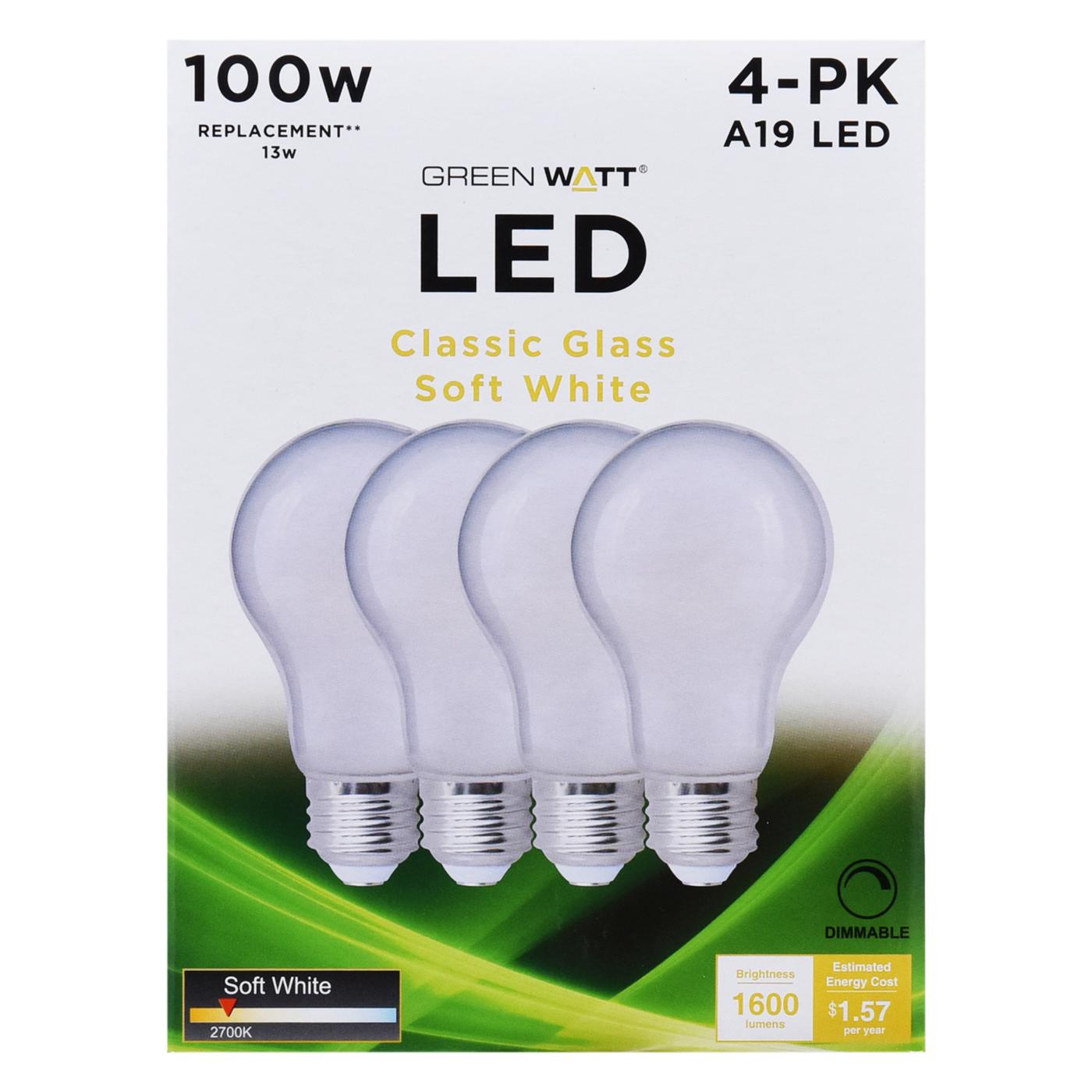 Green Watt A19 100-Watt Frosted LED Light Bulbs - Soft White, 4pk
