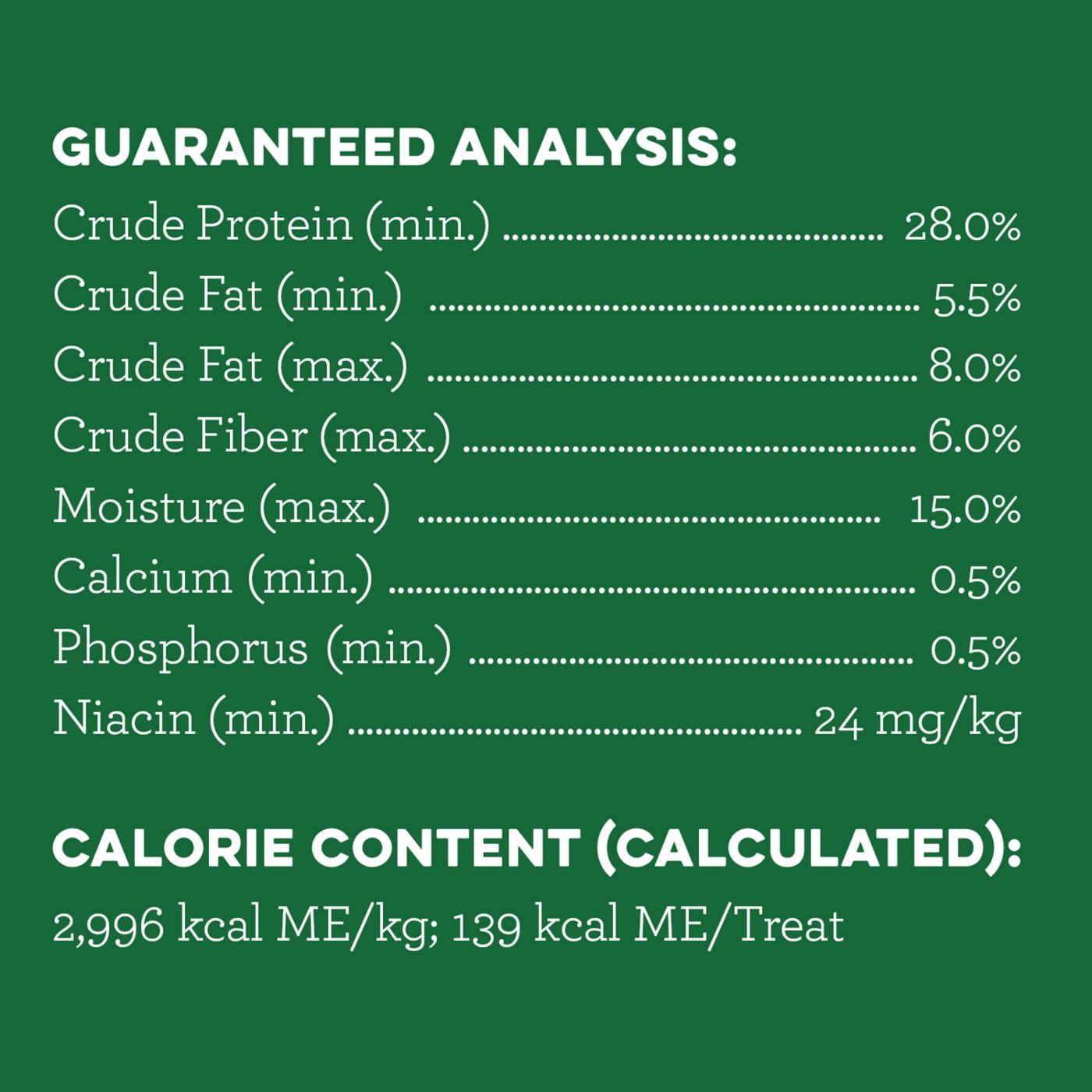 One GREENIES Original Dental Treat a day is all it takes for clean teeth, fresh breath, and a happy dog. Large breeds can't wait to sink their teeth into these delicious, original-flavor dental dog breath chews because they feature a delightfully chewy texture that fights plaque and tartar. Best of all, these natural dog breath treats are made with highly soluble ingredients that are safe and easy to digest. Give your large dog the mouth-wowing treat that helps promote their overall health with GREENIES Dog Treats. Natural Dog Treats Plus Vitamins, Minerals, and Other Nutrients.