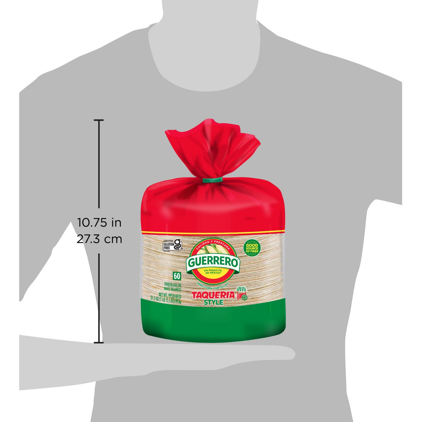 Guerrero Taqueria Style Mini Corn Tortillas use only high-quality ingredients and time-tested cooking methods when making them. These tortillas have a soft texture and traditional flavor that enhances any Mexican recipe, and their extra large size allows you to stuff your tacos and fajitas with even more fillings. Guerrero King Size White Corn Tortillas are also gluten-free and don't contain any lard, trans fat, or cholesterol. For a delicious midweek meal, try filling our corn tortillas with homemade carne guisada, avocado, and cotija cheese. Includes one 60 count package of Guerrero Taqueria Style Mini Corn Tortillas.- One 60-count package of Guerrero Taqueria Style Mini Corn Tortillas- Feel good about your tortilla of choice as our mini corn tortillas are certified kosher, gluten-free, trans fat-free, and contain no cholesterol- Each small tortilla is made to have a soft texture and taste deliciously authentic- We use only the finest ingredients to craft our tortillas with a homemade feel- Fill our versatile tortillas with the protein or veggies of your choice and make your meal or snack one to remember