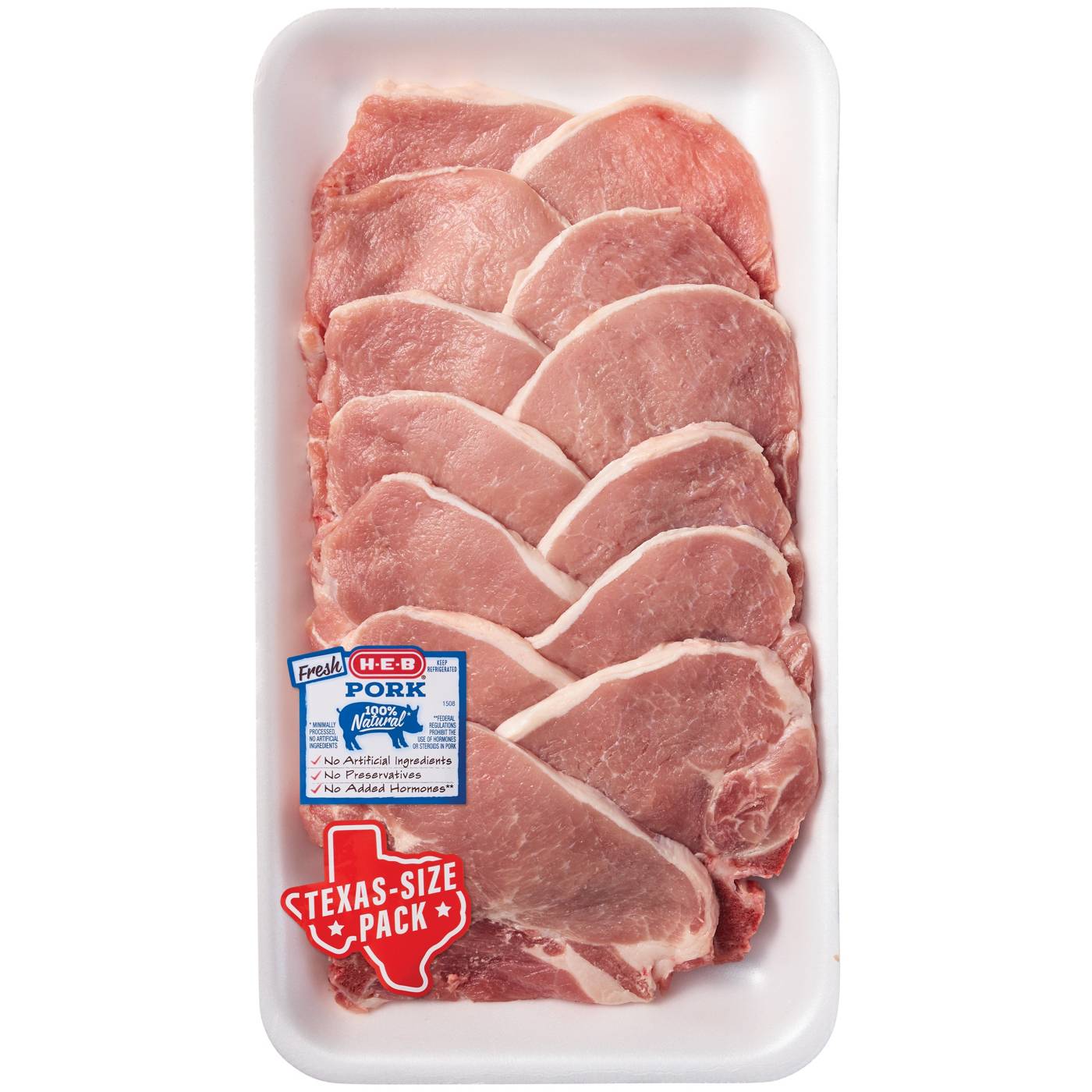 H‑E‑B Bone-in Center Loin Pork Chops, Thin Cut - Texas-Size Pack