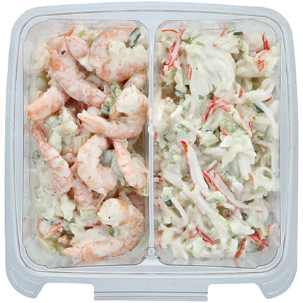 Freshly prepared for your convenience, this grab-and-go seafood salad from our H-E-B Fish Market is flavor-packed and refreshing. Featuring shrimp, it's mixed with creamy salad dressing plus crunchy veggies.