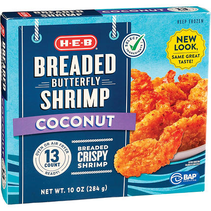 Hand-coated in a sweet and crispy coconut breading, this frozen H-E-B butterfly shrimp is perfect for po'boys, tacos and salads. Ready in minutes whether you bake or air fry them, they're a tasty appetizer option as well.