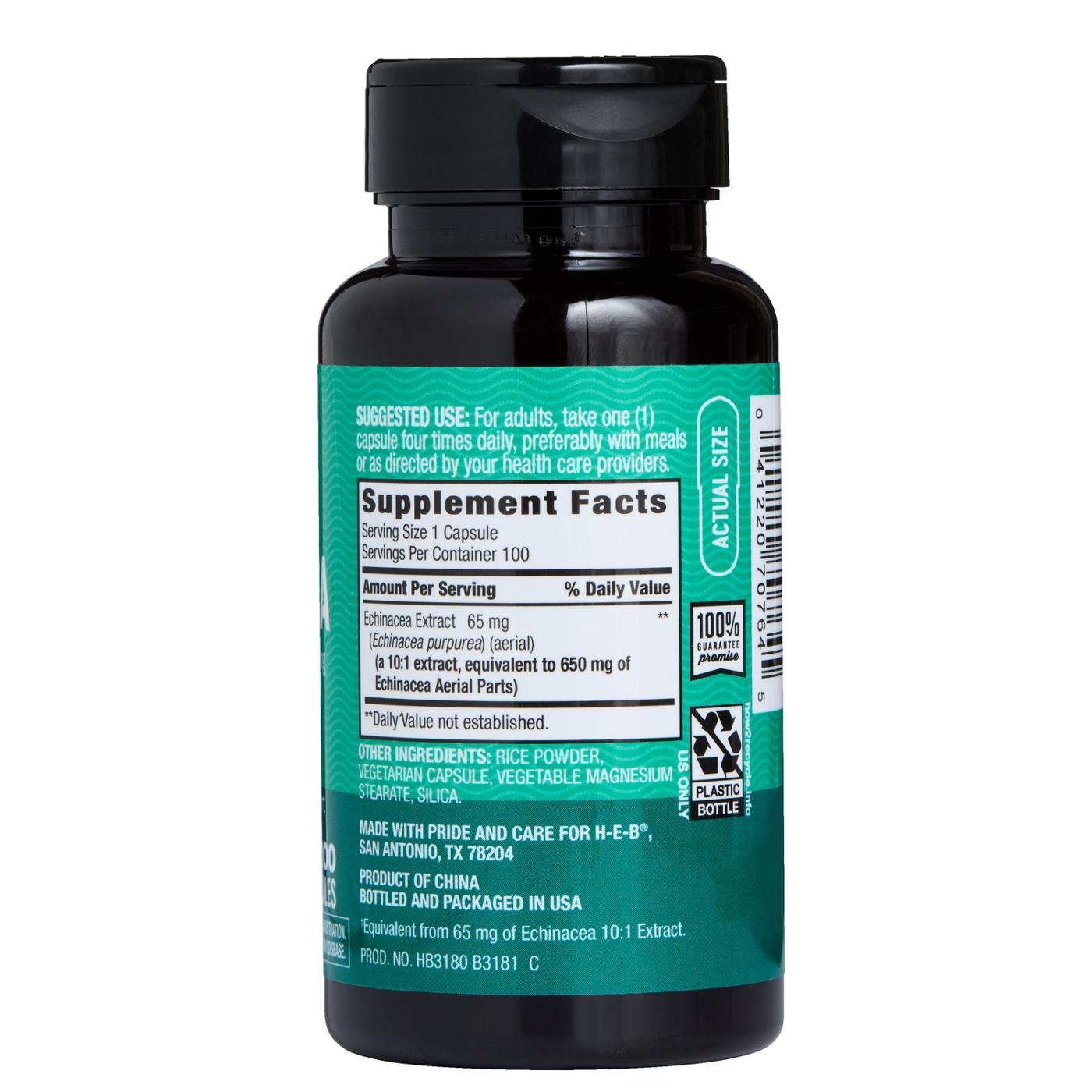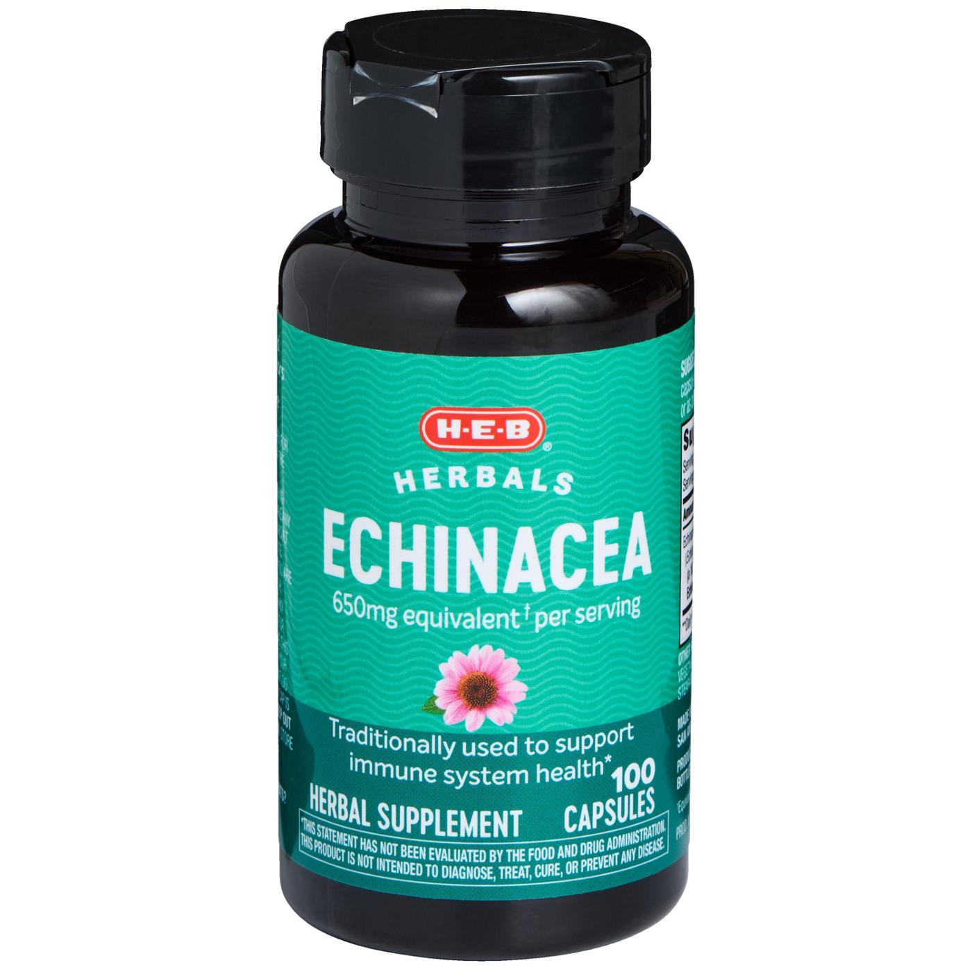 Take these H-E-B echinacea herbal supplement capsules and get 650 mg per serving. Traditionally used to support immune system health, add these capsules to your routine.