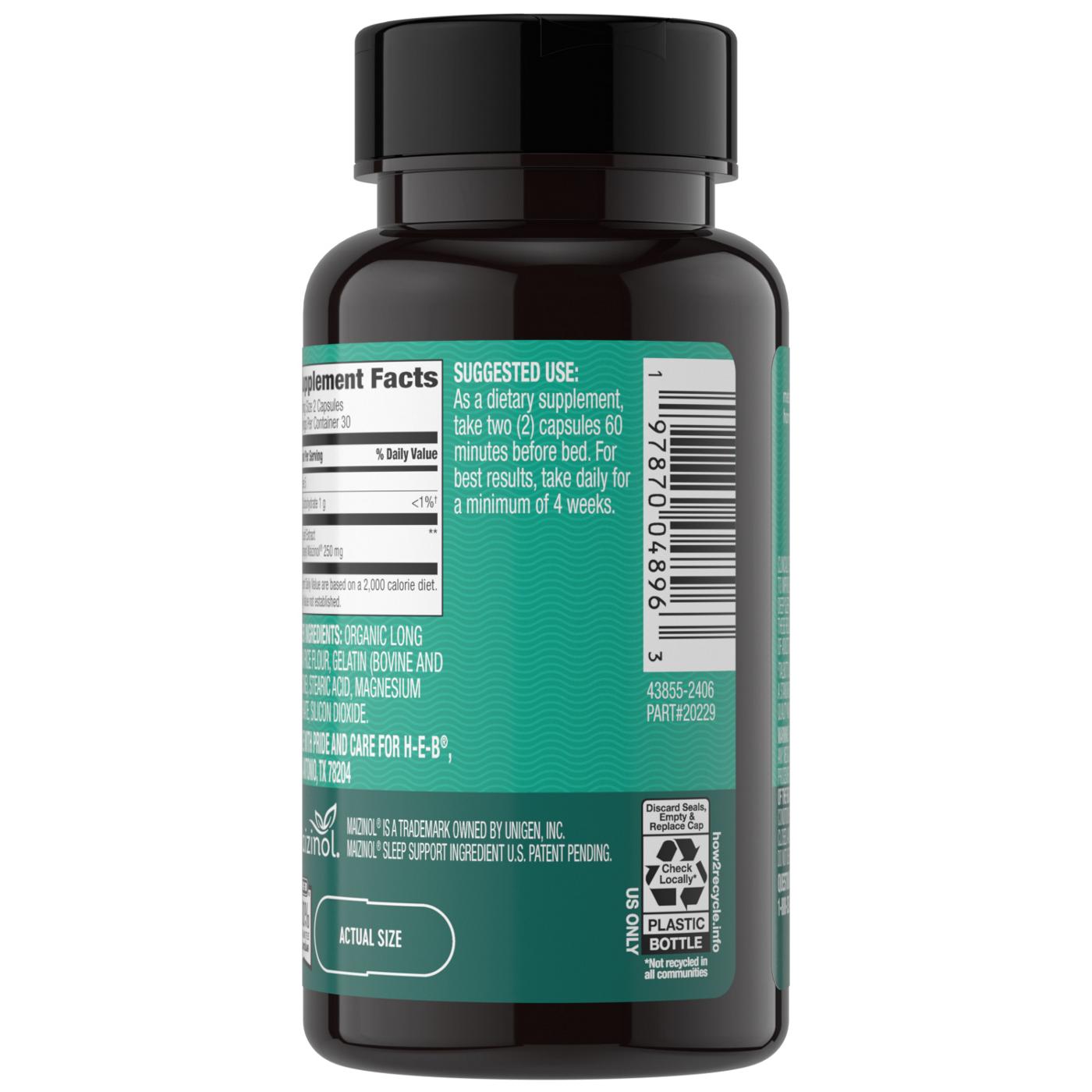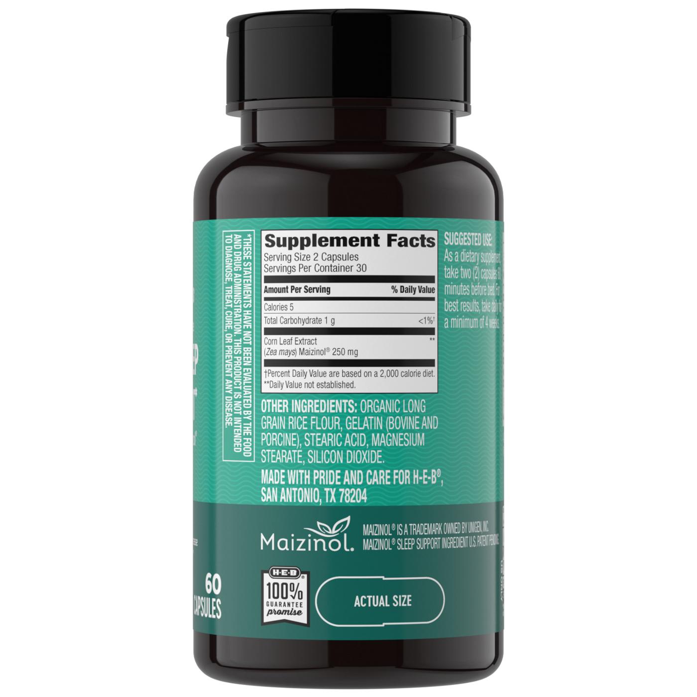 Get deeper sleep with H-E-B Melatonin-Free Deep Sleep Support.* With 250 mg of Maizinol® per serving, it is clinically shown to increase the amount of deep sleep time for a restorative night of sleep.* It is melatonin-free, drug-free, hormone-free, and contains no synthetic dyes or colors.