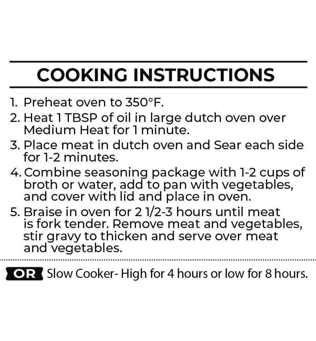 Chicken, Potatoes, Onion, Carrots, Celery, Seasoning (Salt, Dextrose, Modified Cornstarch, Beef Flavor [Yeast Extract, Salt, Sunflower Oil], Burgundy Wine Flavor [Maltodextrin, Natural Flavor], Onion Powder, Garlic Powder, Spices (Chili Peppers, Black Pepper, Coriander, Celery, Bay Leaves, Allspice), Yeast Extract, Caramel Color, Beef Broth [Beef Broth, Flavor, Salt], Sunflower Oil [Processing Aid], Whole Mustard Seed, Xanthan Gum, Citric Acid), Garlic.Allergens and safety warnings