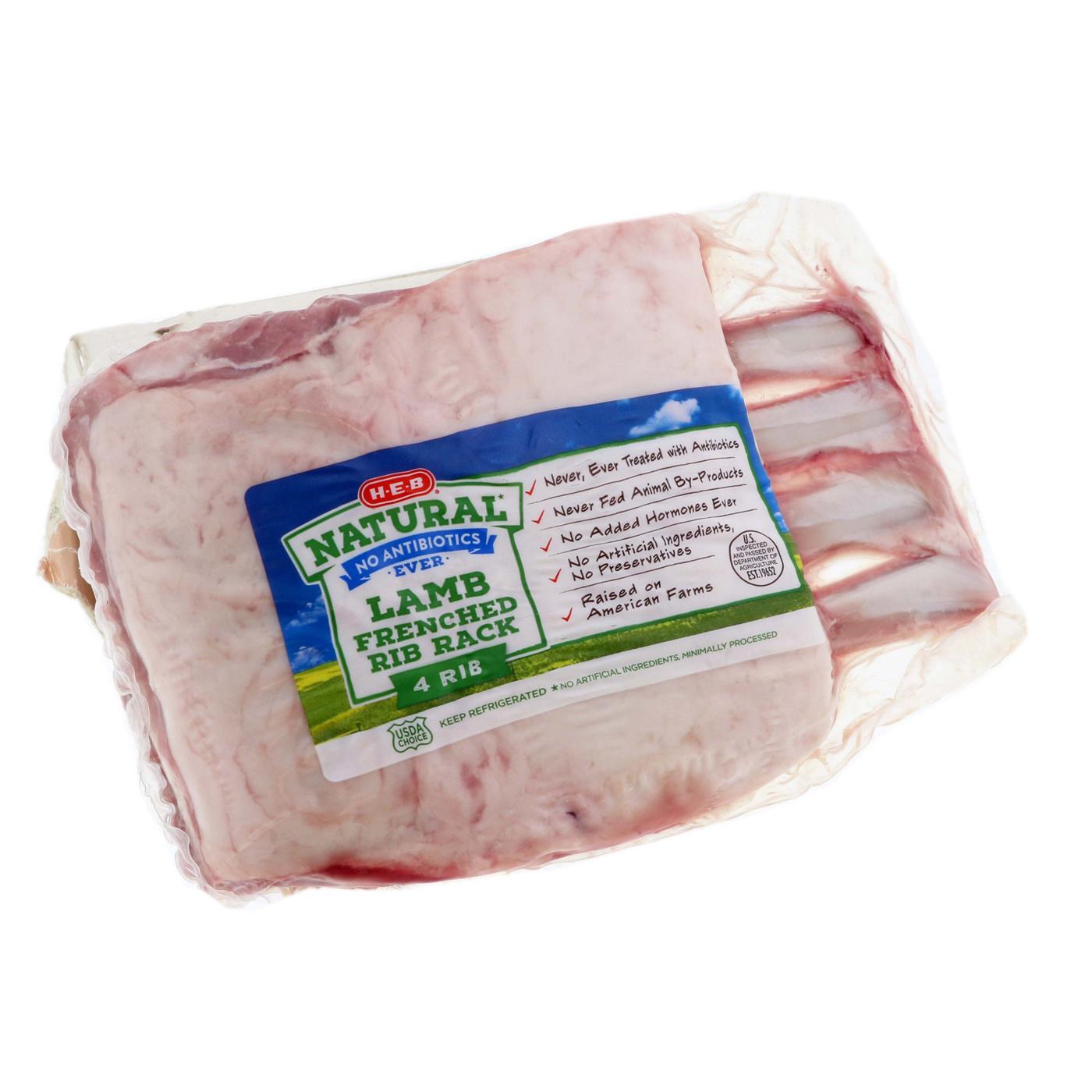 Great for oven-roasting or grilling, this H-E-B Natural rack of lamb is perfect for a special meal. Frenched by our certified meat cutters, the meat on the ribs has been cut away, leaving the bones partially exposed for an elegant look on the plate. Tender and full of savory flavor, lamb chops are extra tasty served with fresh mint sauce.