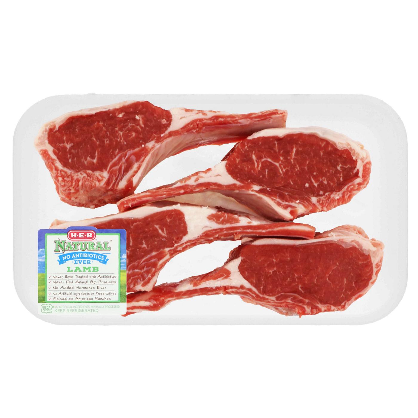 For an elegant main course or even appetizer, pick up some H-E-B Natural lamb rib chops. Great for grilling, pan searing or air frying, they're sourced from lambs raised on American ranches that are never treated with antibiotics or added hormones. Lamb is tender and flavorful, pairing well with rosemary, mint and garlic. These chops are about ¾" – 1" thick each.