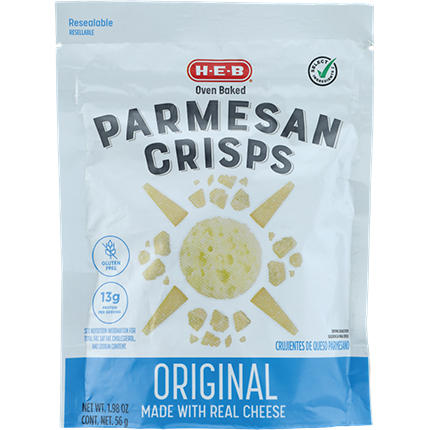 H-E-B Parmesan Cheese Crisps are a delightful snack packed with the rich, savory flavor of aged Parmesan cheese. Each crisp offers a satisfying crunch, making it the perfect companion for soups, salads, or just as a stand-alone snack. The cheesy, nutty taste and airy yet crisp texture make these an irresistible treat for cheese lovers looking for a low-carb option.