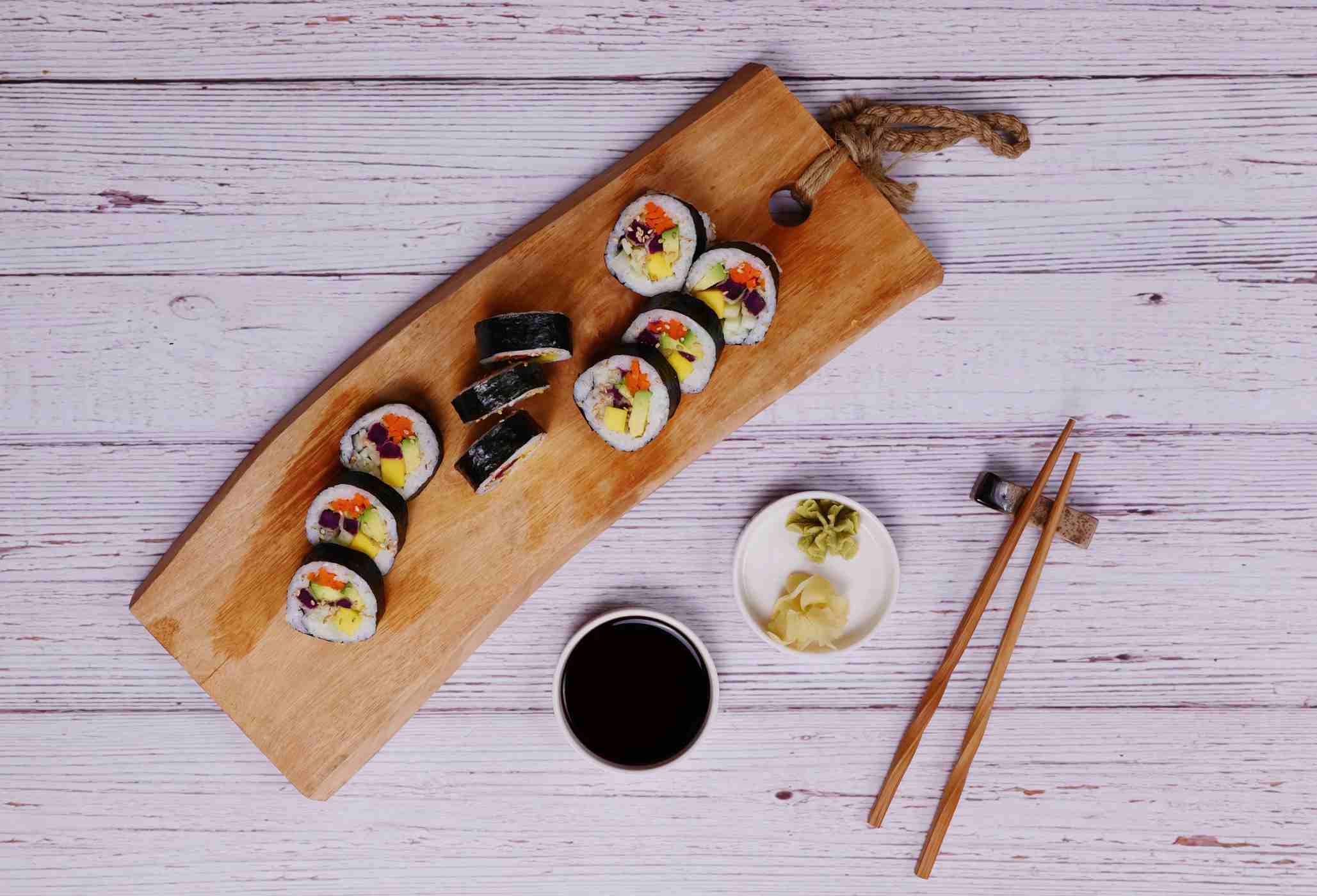 • Purple sweet potato tempura, avocado, mango, carrot and cucumber