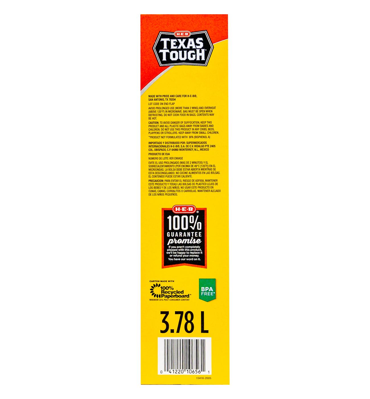 H-E-B Texas Tough products are smartly designed with advanced features that make every day a little easier. From food storage and wrap to trash bags, this assortment offers a total solution that's tough to surpass in quality and functionality.
