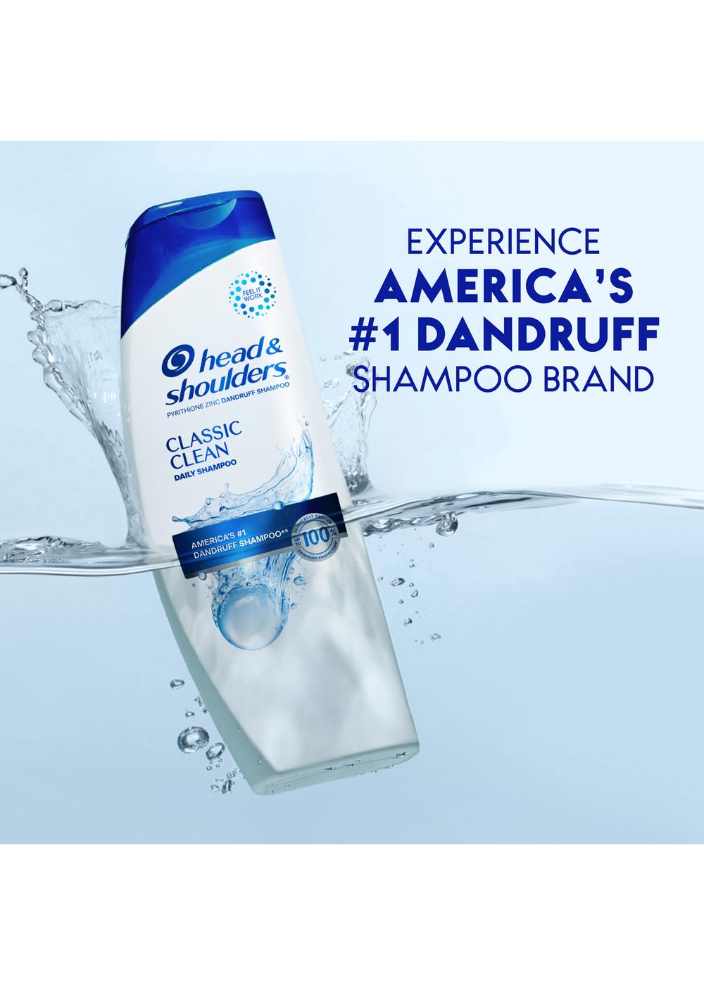 Ignite your senses and feel it working with every wash. Head and Shoulders’ unique formula works 7 surface layers deep in your scalp to help stop dandruff at its source and maintain healthy hair. Brought to you by the #1 dermatologist-recommended brand, Head and Shoulders Classic Clean Shampoo provides proven protection from flakes, itch (associated with dandruff), oil (washes away oil and flakes) and dryness with regular use to ensure that your scalp is at its best and your locks are up to 100% flake-free (visible flakes; with regular use). Featuring a light, clean scent and pH-balanced formula, this anti-dandruff shampoo cleans, protects and moisturizes hair for a fresh feeling and vibrant look. Our unique formula, with zinc pyrithione, delivers multiple benefits: fights dryness, calms itching (associated with dandruff), relieves irritation (associated with dandruff), reduces redness (associated with dandruff), controls oiliness (washes away oil and flakes), and removes flakes (associated with dandruff, washes away oil and flakes)