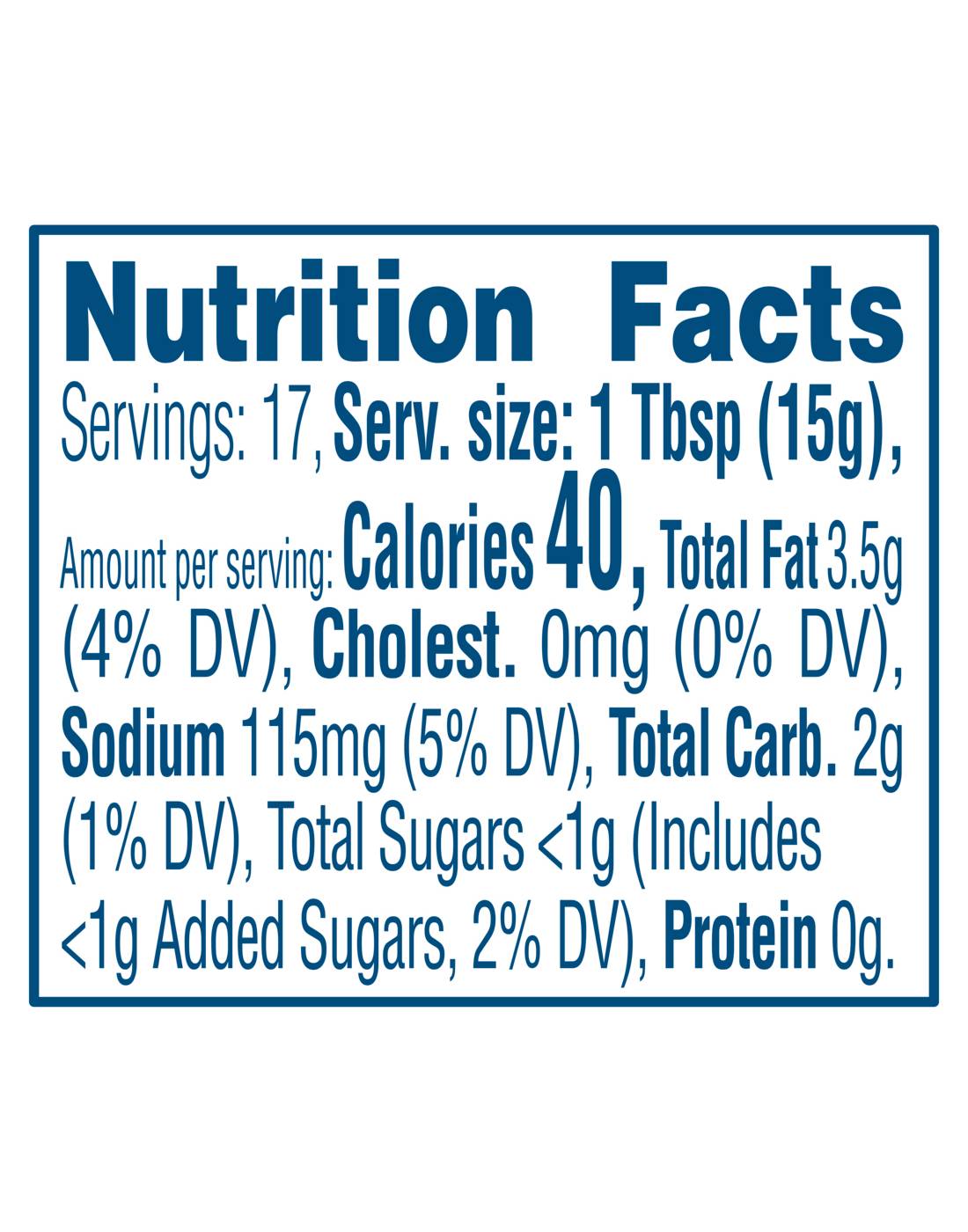 Serving Size1.00 tbsp- Amount Per ServingCalories40