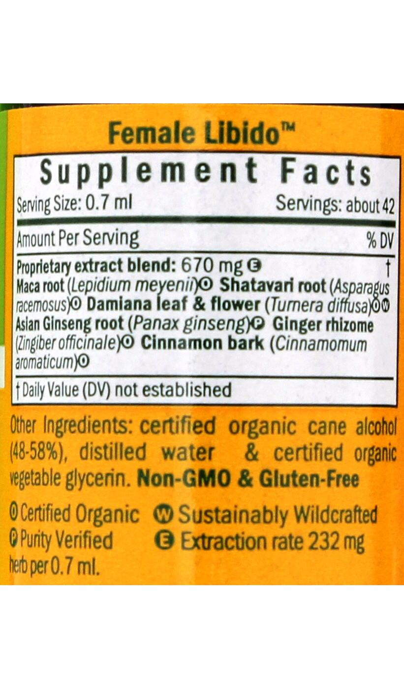 Female Libido features Muira Puama, extracted from the main stem with bark of Croton echioides shrubs that are responsibly wildcrafted in the Amazon region of Brazil. The formula also features Asian Ginseng extract prepared from the roots of Certified Organic Panax ginseng plants.