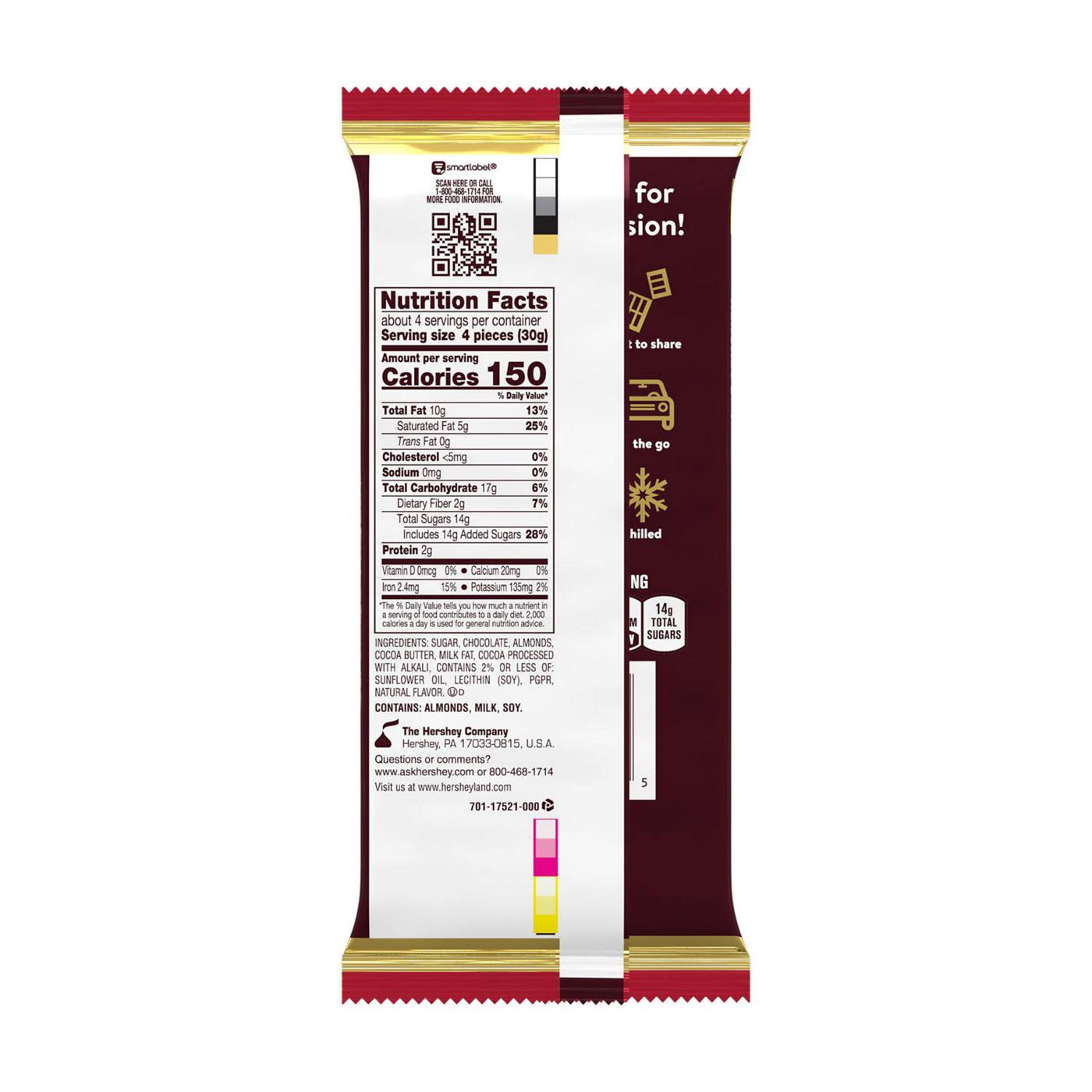 • Bring your snacking, gift giving or s'mores game to the next level with a smooth, rich Hershey's Special Dark chocolate bar with almonds