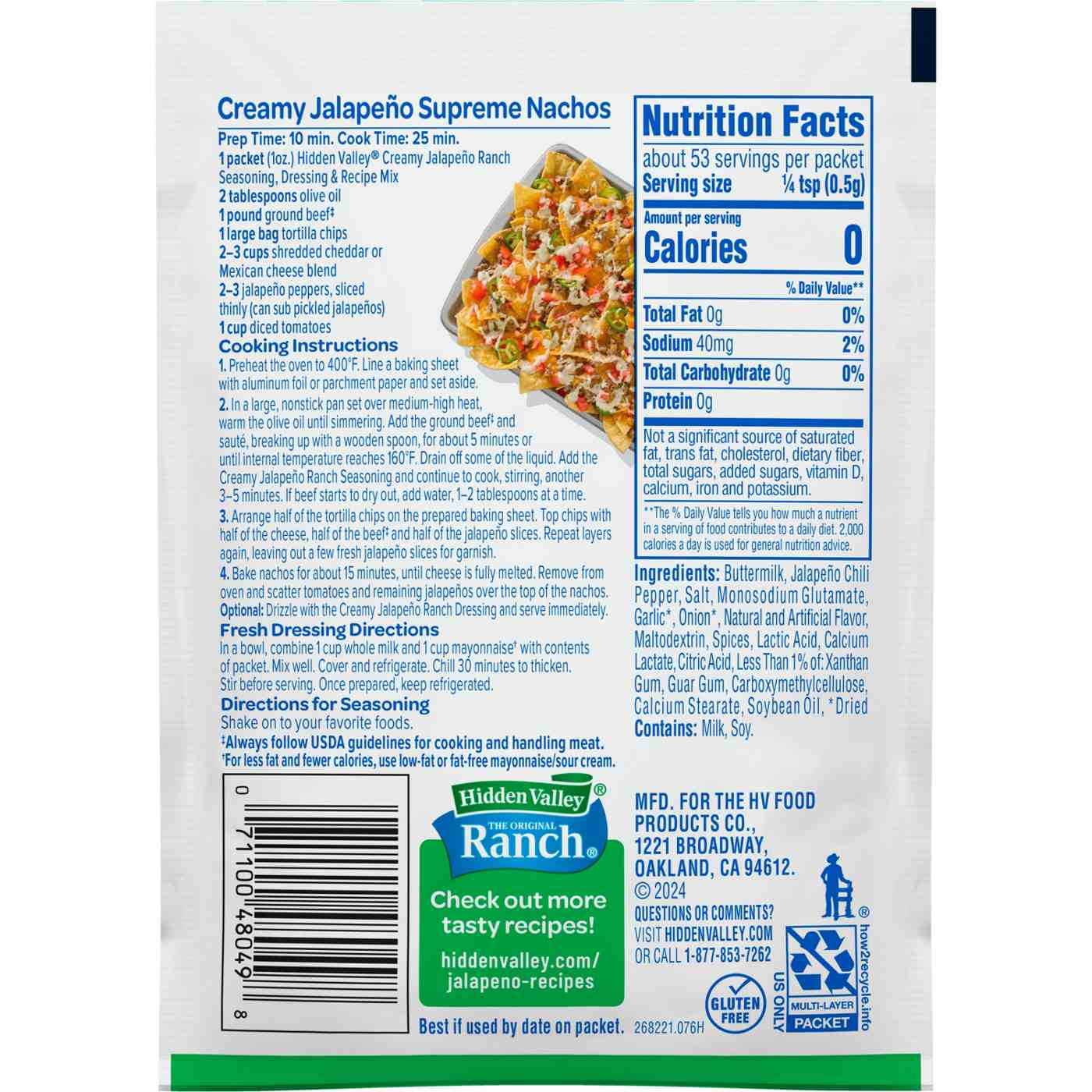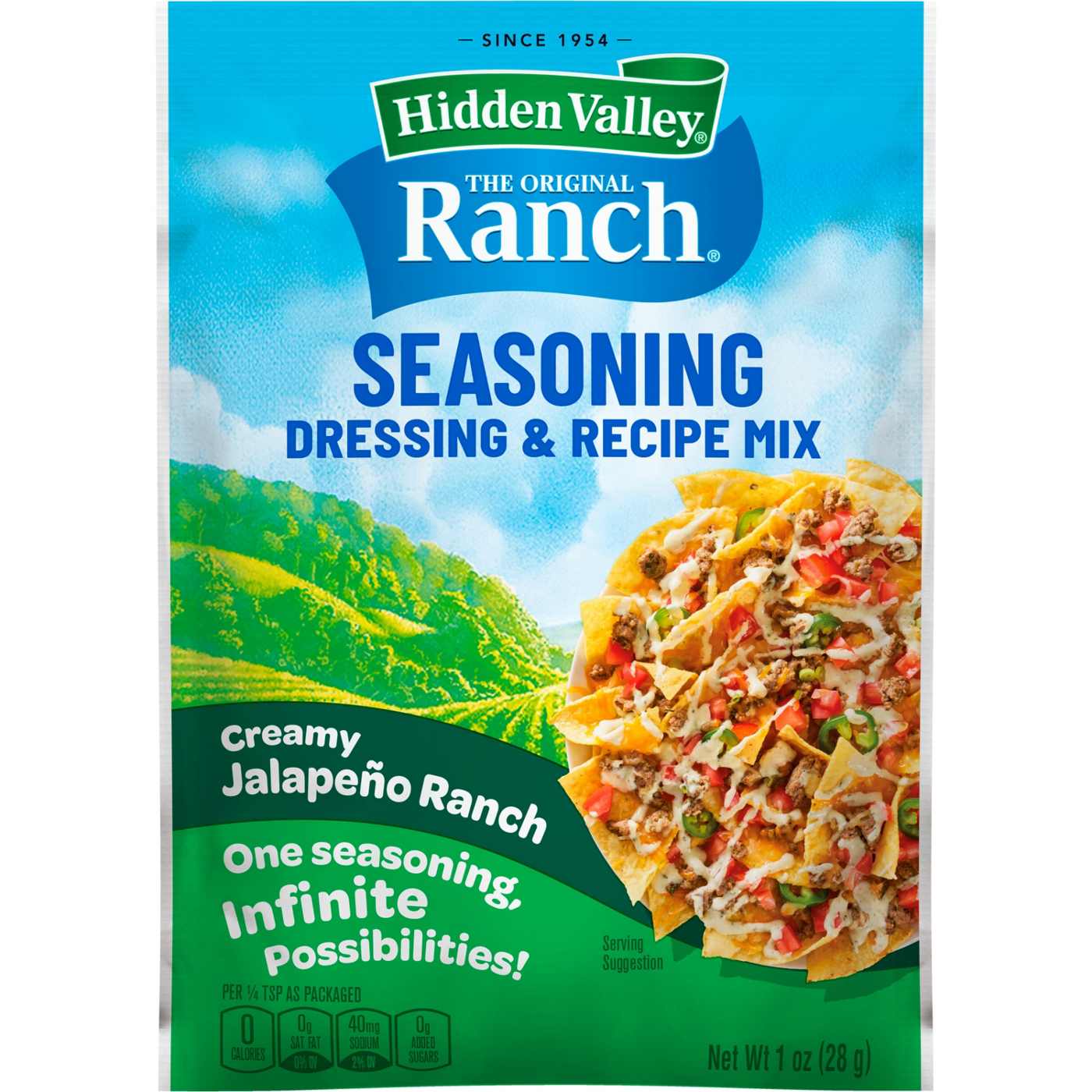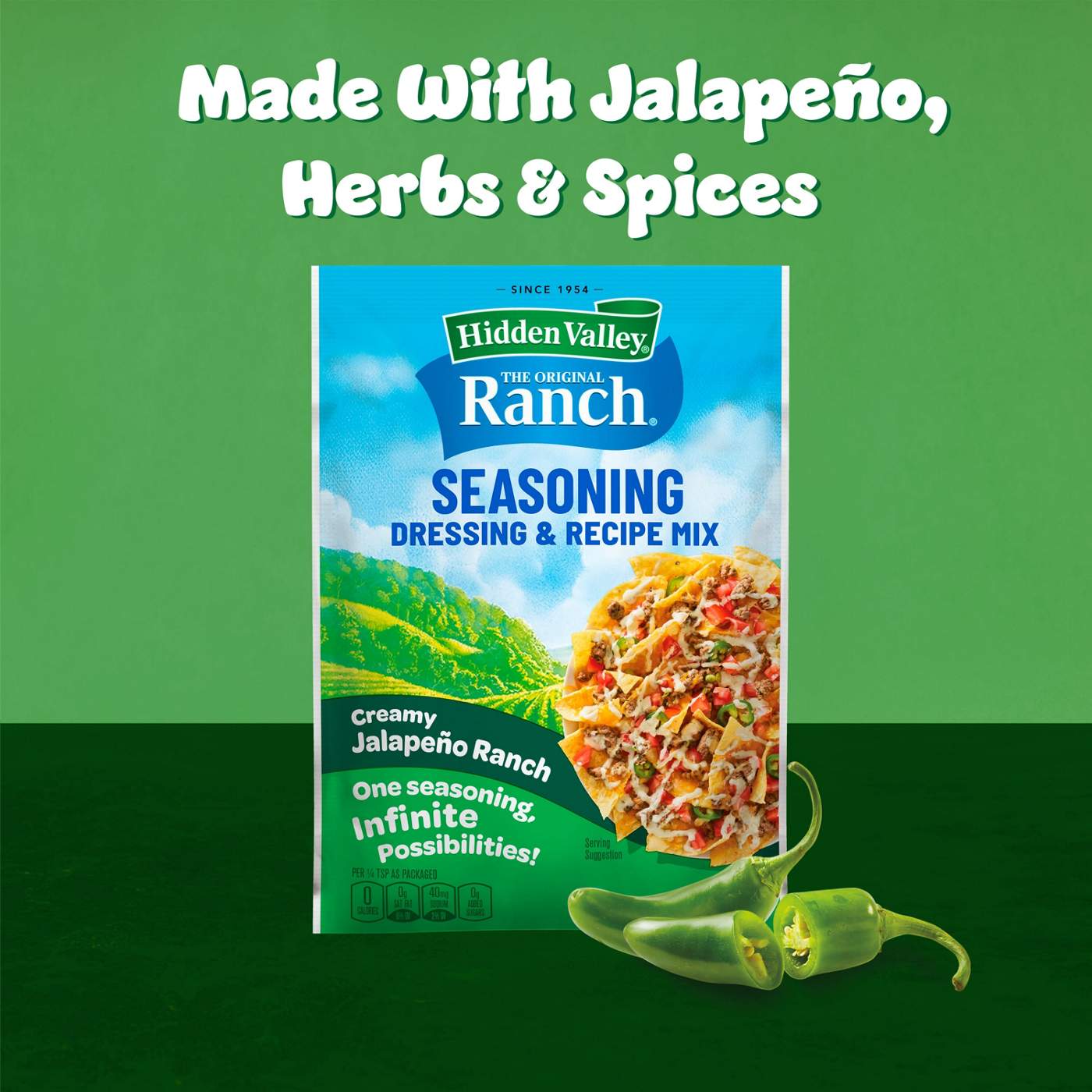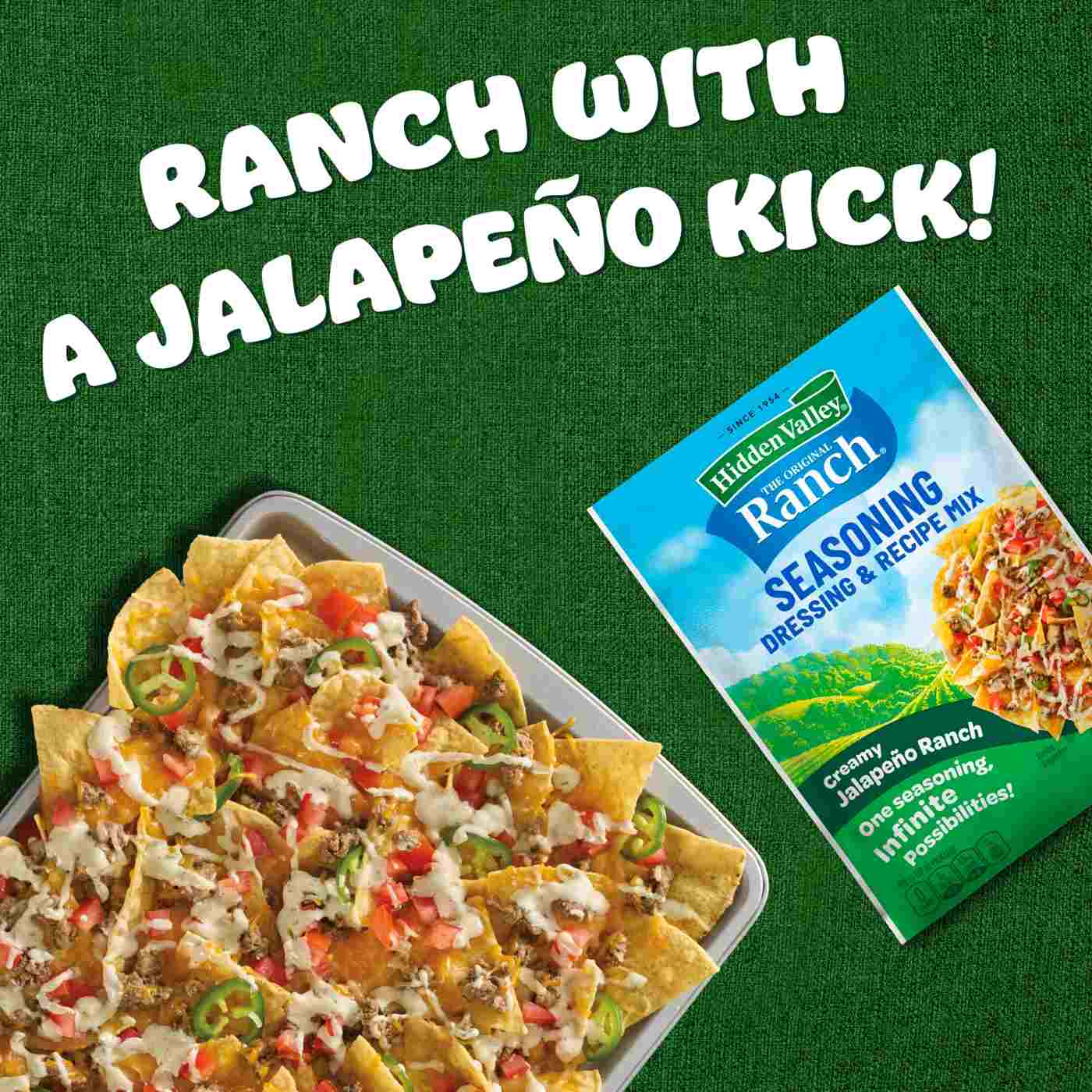 Hidden Valley Creamy Jalapeno Ranch Seasoning Dressing and Recipe Mix lets you make fresh, creamy dressing or create tasty meals the family will love.