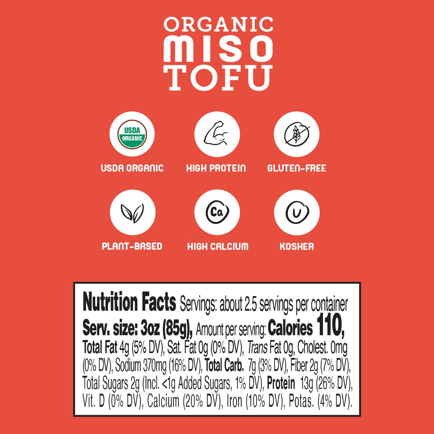 Perfectly savory. Deliciously salty-sweet. This Miso Tofu, has the most flavorful ingredients including traditional, naturally fermented organic red miso to pair with expertly crafted Organic Extra Firm Tofu. It’s everything you love. Nutty, creamy tofu now in an umami-rich marinade.