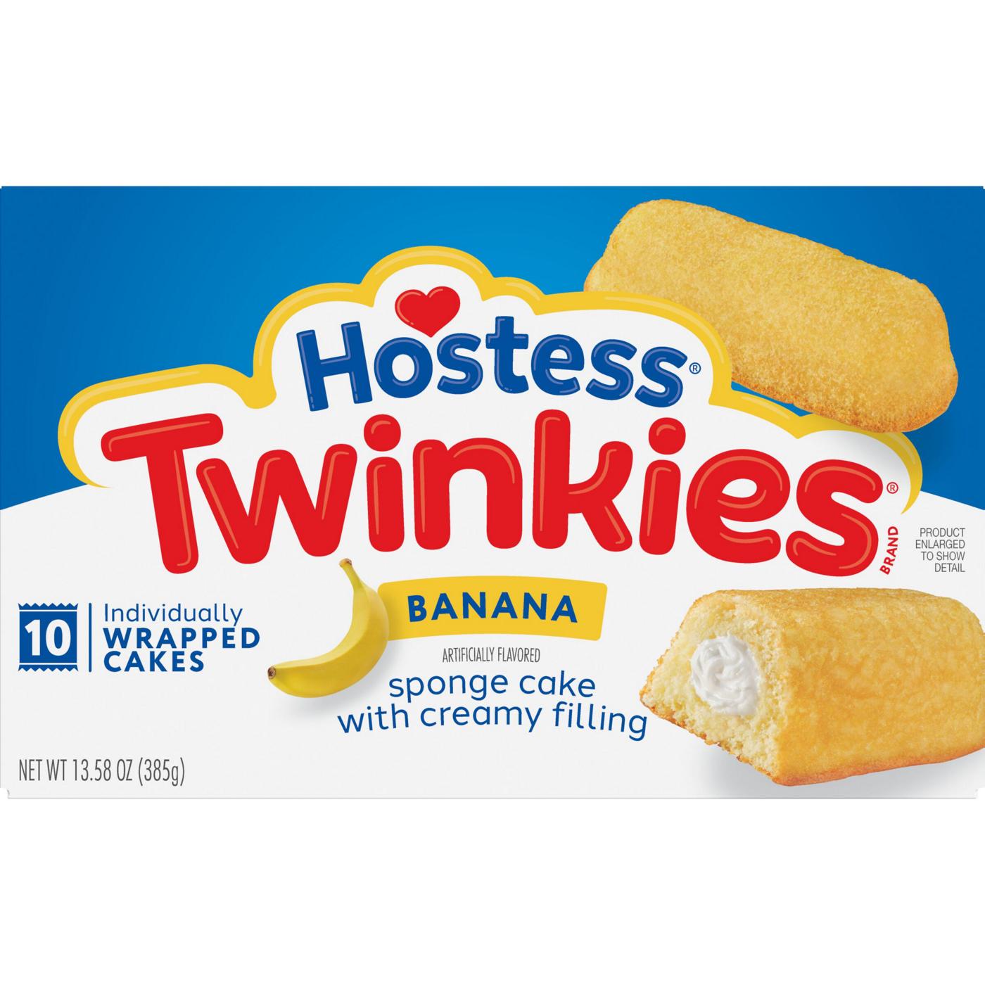 Are you ready to go bananas for this tasty twist on the original golden snack cake? LIVE YOUR MOSTESS with HOSTESS Banana Flavored TWINKIES. Sink your teeth into the soft yellow cake and uncover the sweet banana filling. The sponge cake is soft and delicious. The filling is rich and creamy. Individually wrapped, these artificially flavored banana snack cakes are full of fun.