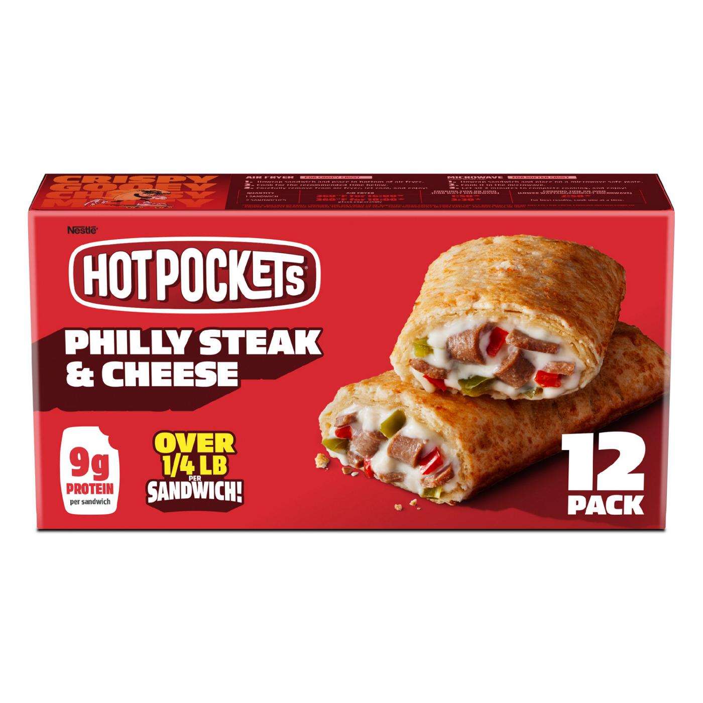 • MICROWAVE OR AIR FRYER: Prepare these frozen Philly cheese steak Hot Pockets however you like with instructions for the microwave for a softer crust, or as an air fryer snack for a crispy crust