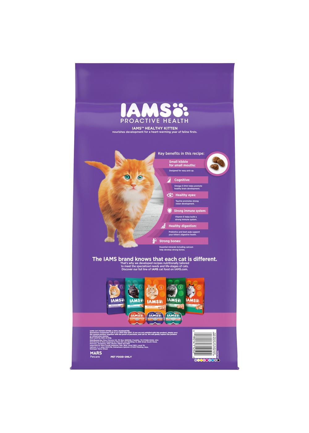Help your kitten grow into a strong, healthy adult cat with IAMS PROACTIVE HEALTH Healthy Kitten Dry Cat Food with Chicken, designed for a cat’s first year of playful, fluffy, furry, feline firsts. Chicken is the #1 ingredient in this high protein kitten kibble, designed in bite sized pieces perfect for little mouths. With nutrients like those in their mother’s milk plus vitamin E, this dry kitten food helps build strong immune defenses in young cats. This recipe is also made with omega-3 DHA for brain development, as well as prebiotics and beet pulp to support your kitten’s digestive health. If you’re looking for kitten food to support healthy development for your kitten’s first year, get your paws on this… and keep your kittens happy, healthy, and ready to pounce as they grow into adult cats with IAMS.Contains one (1) 7 lb. bag of IAMS PROACTIVE HEALTH Healthy Kitten Dry Cat Food Kibble with ChickenChicken is the 1st ingredient in this nutrient-rich kitten food, made to help your kitten develop and grow into a strong, lean, healthy adult catHelps promote healthy brain development with omega-3 DHAWith nutrients like those in mother’s milk plus vitamin E to help kittens build strong immune defensesMade in the USA with the World’s Finest IngredientsHelps your kitten develop healthy digestion with natural fiber and prebioticsHelps promote strong vision development and healthy heart with taurine