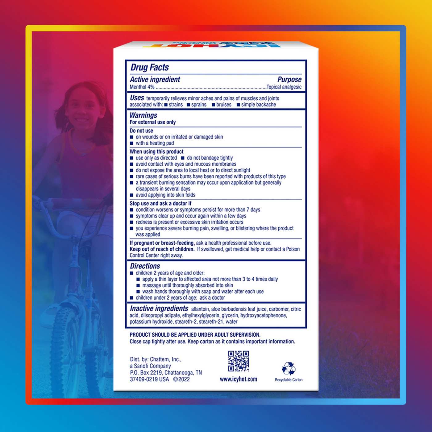 Help your child get back to the adventures they love with Icy Hot Kids. Introducing Icy Hot Kids Pain Relief Roll-On Liquid, a cooling pain-relief liquid developed with pediatricians and customized for kids. The kid-friendly formula is made with naturally sourced menthol and is free from alcohol, preservatives, fragrance, silicone, dyes, parabens, and phthalates. Icy Hot Kids comes in a smaller-sized package that is perfect for kids ages two years old and older. Best of all, the roll-on applicator provides targeted, mess-free application that keeps hands clean. Give your child the gift of play with Icy Hot Kids Pain Relief Roll-On Liquid.