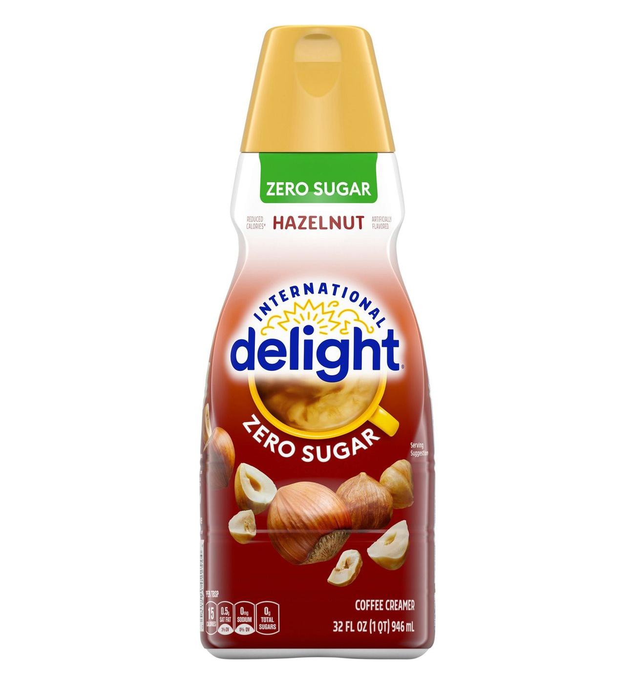 • Always Delightful: One 32 fl oz bottle of International Delight Refrigerated Zero Sugar Hazelnut Coffee Creamer Liquid