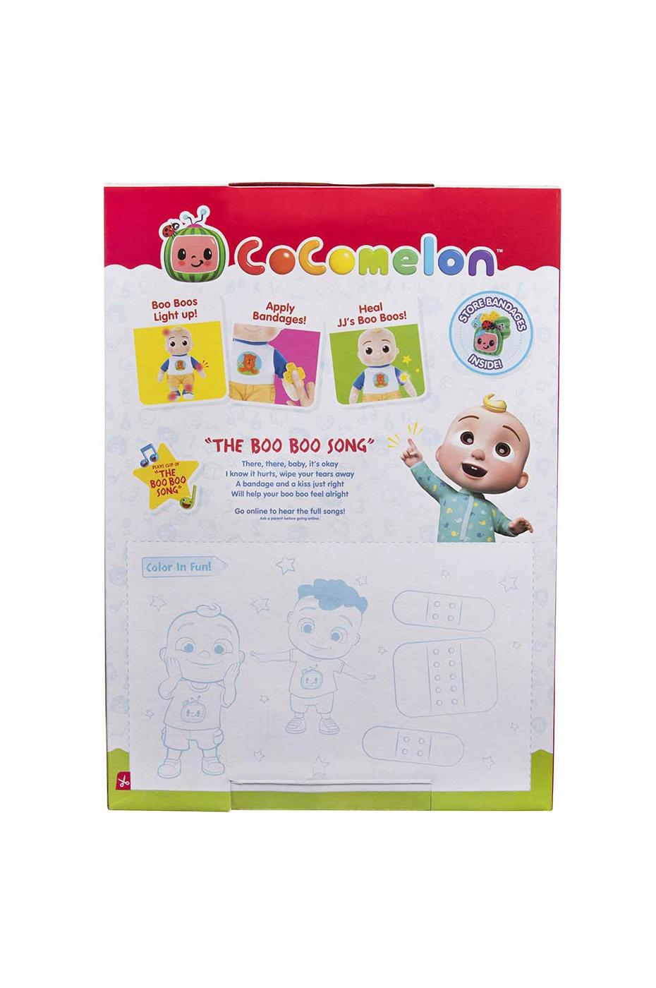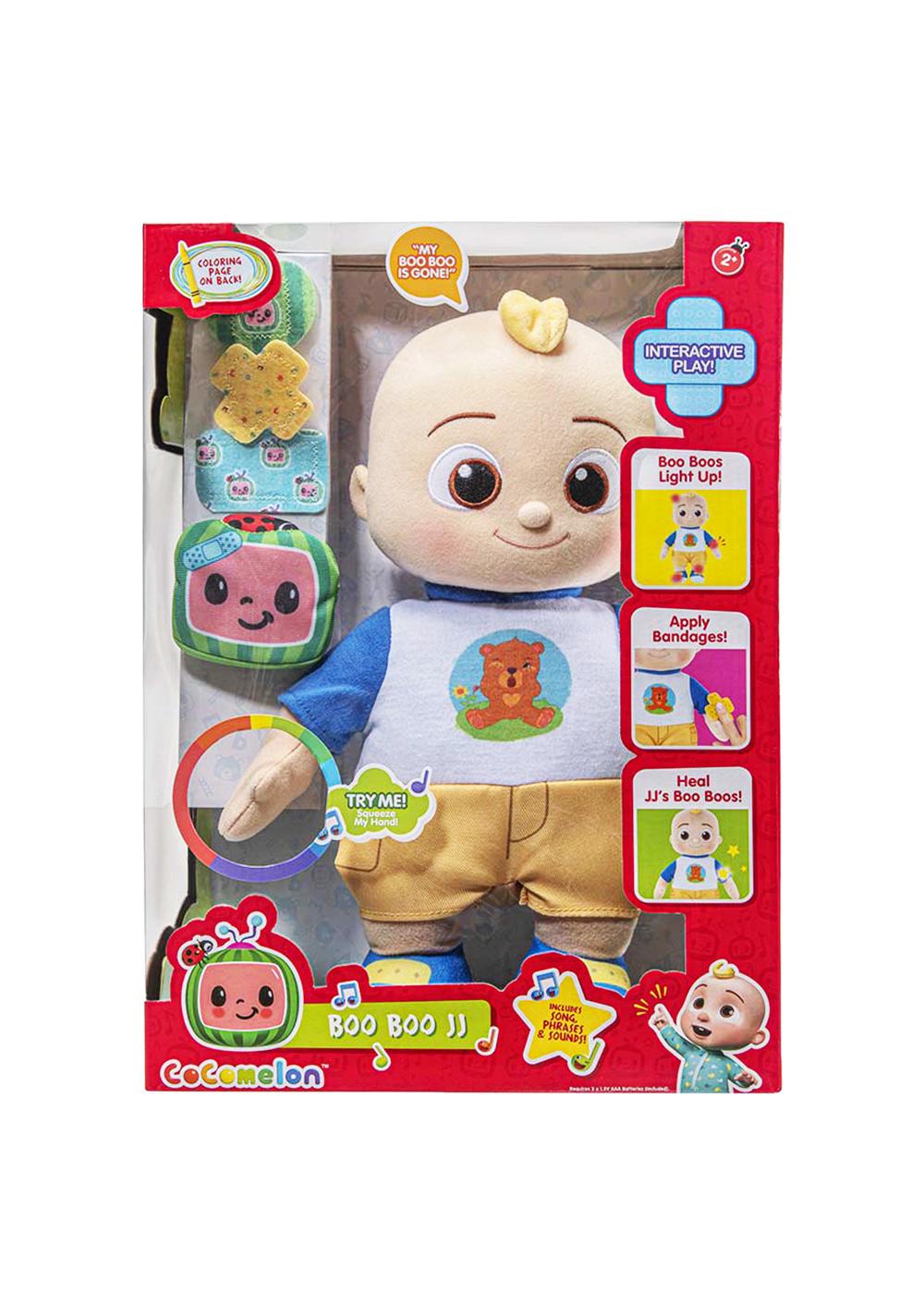 “I bumped my head!” Oh, no! JJ is hurt! With the CoComelon Boo Boo JJ Plush, JJ will show you where he’s hurt, whether it’s on his head, elbow, knee, or foot. These areas will light up so that your child can quickly come to the rescue, Bandage Case in tow! The Bandage Case has three CoComelon-themed bandages. JJ reacts when he’s hurt, and then when he’s healed. When JJ starts to cry, cure the boo boo by gently applying a bandage over the lit up area. Then, JJ will giggle or go “Wee” and say “Yay! My boo boo is gone!” among other fun phrases and sounds. The Boo Boo JJ Plush also plays a clip of ‘The Boo Boo Song’ when you press his belly! Your little one will learn how to care for and cure ‘boo boos’ and ‘ouchies’ with CoComelon’s Boo Boo JJ!