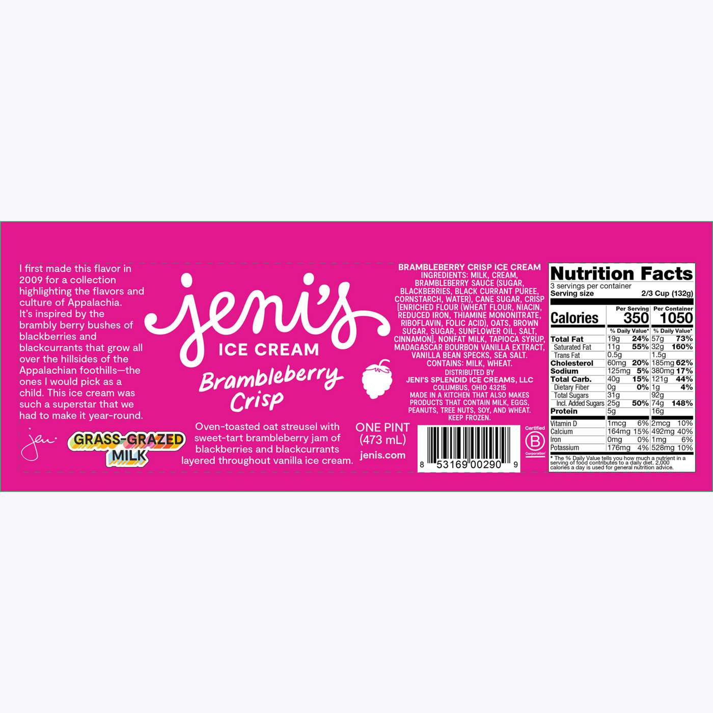Nonfat Milk, Cream, Cane Sugar, Blackberries, Tapioca Syrup, Black Currant Puree, Enriched Unbleached Flour (Wheat Flour, Niacin, Reduced Iron, Thiamine Mononitrate, Riboflavin, Folic Acid), Butter, Rolled Oats, Brown Sugar, Madagascar Bourbon Vanilla, Cornstarch, Sea Salt, Cinnamon, Vanilla Bean.Allergens and safety warnings