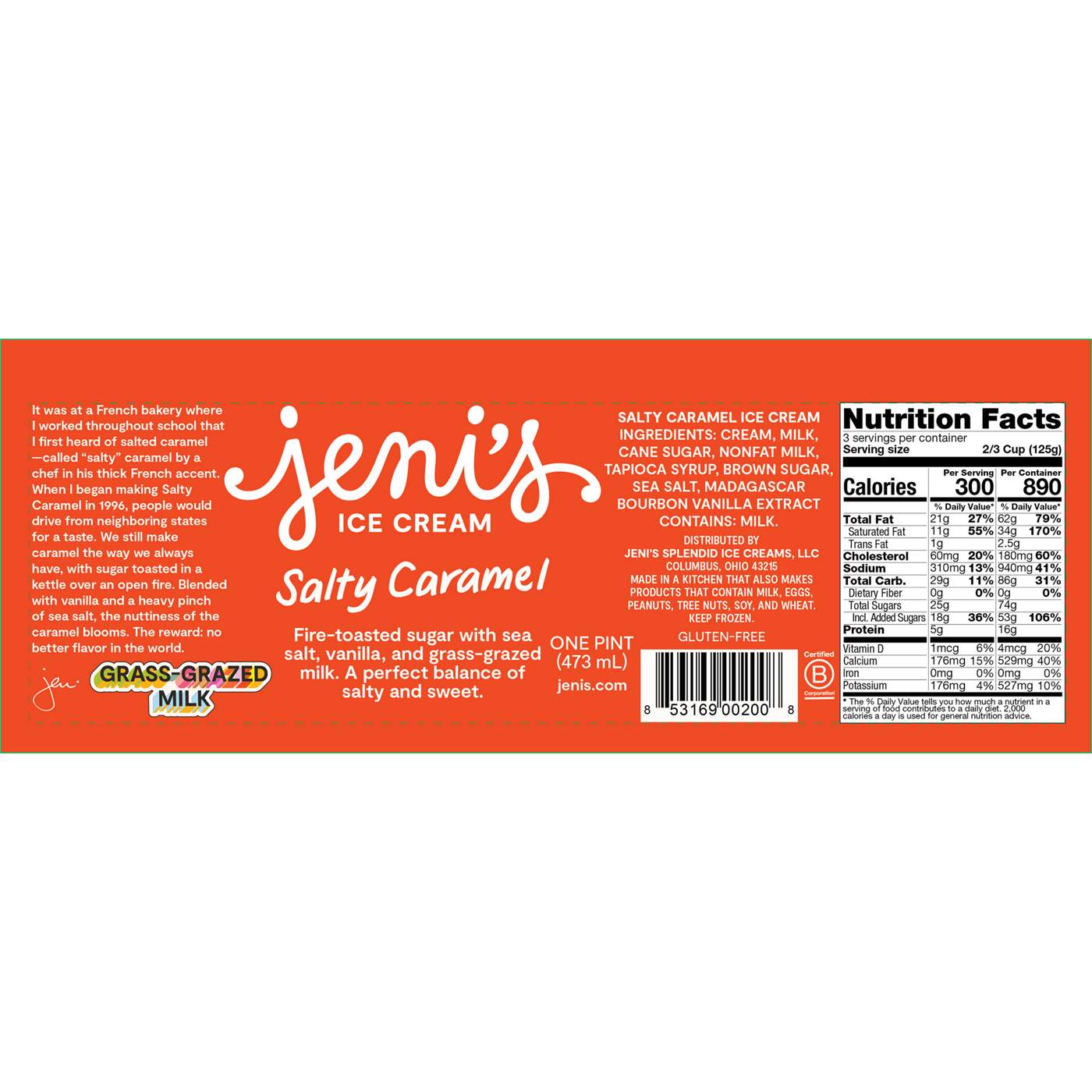 "It was at a French bakery where I worked throughout school that I first heard of salted caramel - called "salty" caramel by a chef in his thick French accent. When I began making Salty Caramel in 1996, people would drive from neighboring states for a taste. We still make caramel the way we always have, with sugar toasted in a kettle over an open fire. Blended with vanilla and a heavy pinch of sea salt, the nuttiness of the caramel blooms. The reward: no better flavor in the world." - Jeni