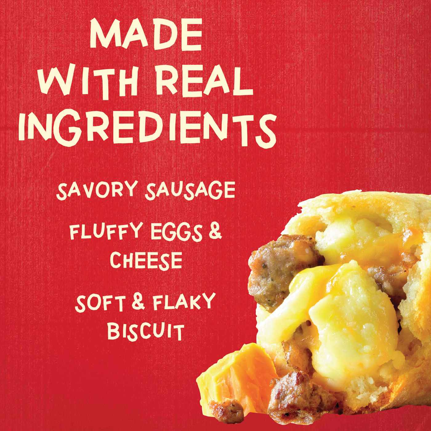 • Wake Up to Yum: Start your morning off with a boost of happiness so good, you can taste it. Perfect for kids and busy parents alike, our roll-ups are made with savory sausage, eggs, cheese, and rolled into a soft and flaky biscuit.