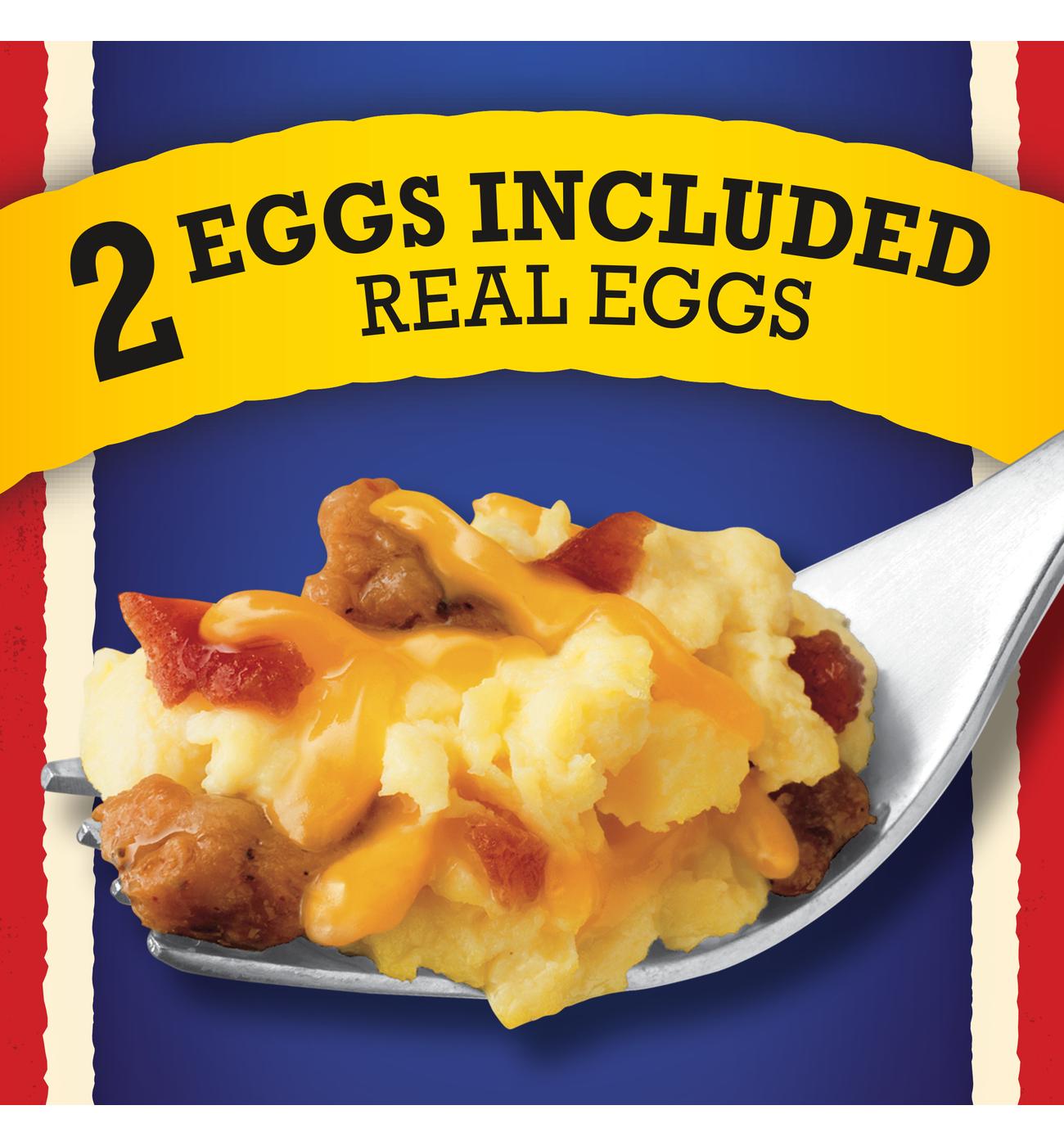 • Fully cooked premium pork sausage, bacon, and cheddar cheese
