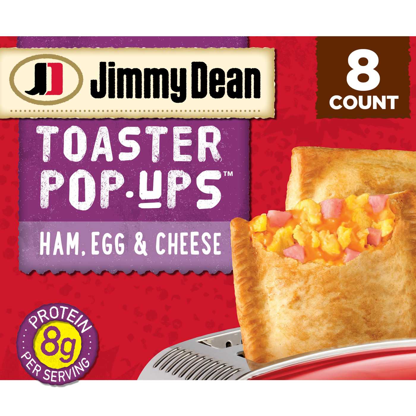 Jimmy Dean® Toaster Pop-Ups , an easy-to-prepare breakfast to start the day off right. Jimmy Dean Toaster Pop-Ups are made with fully-cooked Jimmy Dean sausage crumbles or ham, eggs, and real cheddar cheese inside of flaky breakfast pastries. Protein packed and ready to enjoy in minutes from the toaster, Toaster Pop-Ups are sure to become one of your family‘s easy morning favorites