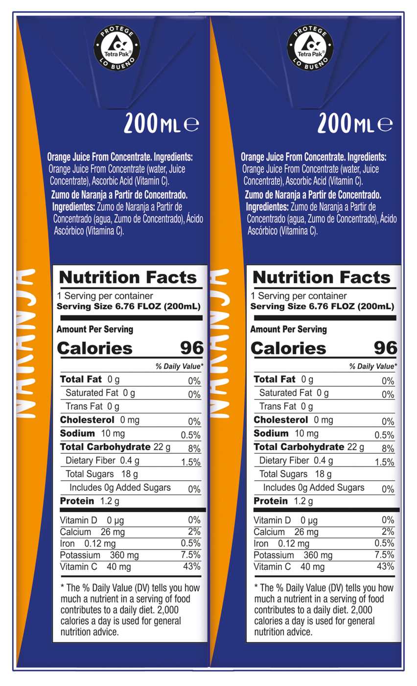 Orange Juice From Concentrate (Water, Juice Concentrate), Ascorbic Acid (vitamin C).