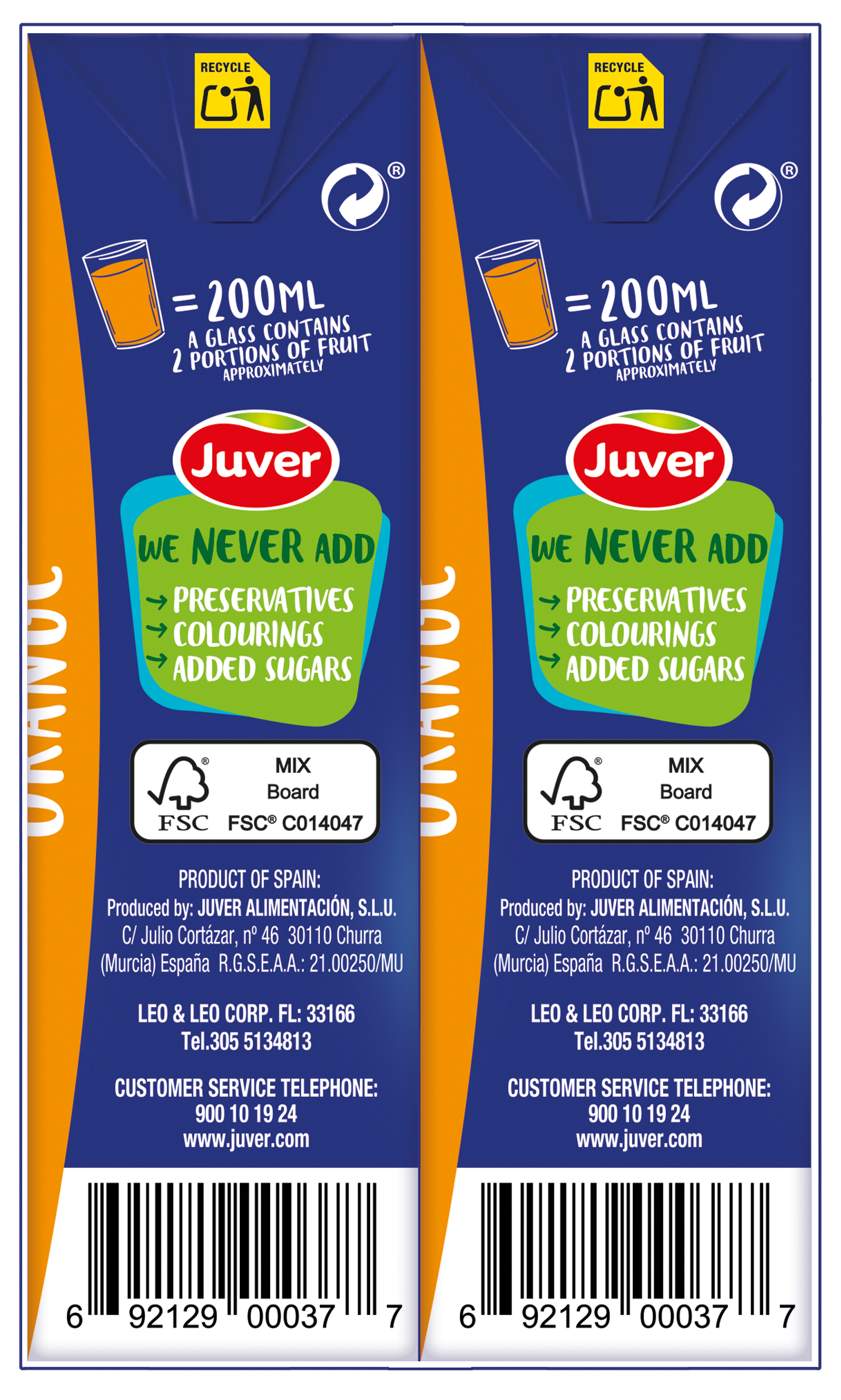 Juver 100% Orange Juice 6.76 oz Boxes