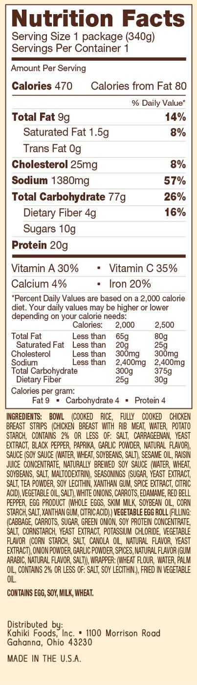 Kahiki Chicken Fried Rice With Vegetable Egg Roll