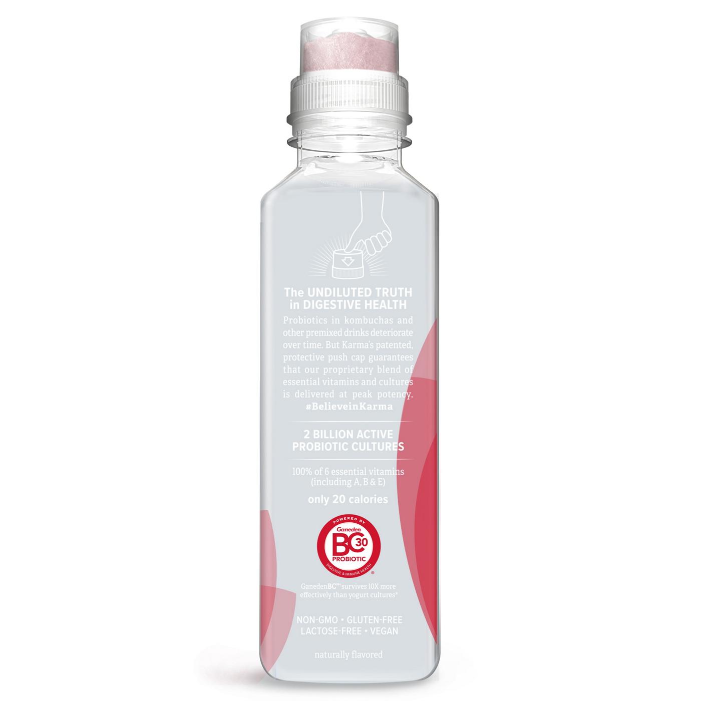 Infuse nutrition into water and replenish your body with digestive and immune health support. Karma Probiotic Water delivers more than 10X the active probiotic cultures than yogurt. With 2 billion cultures, 100% of 6 essential vitamins and only 20 calories, Karma Probiotic Water optimizes digestive health and immune support. Karma Probiotic Water is made with the patented probiotic GanedenBC30. No artificial colors, flavors or preservatives, Non-GMO, Gluten Free, Lactose Free, Vegan, Kosher.