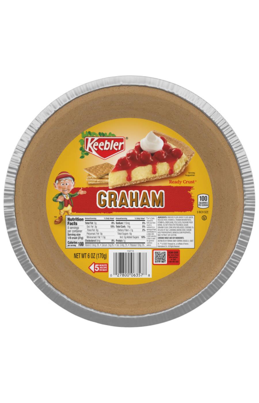 A Keebler graham cracker pie crust is sure to be your best baking buddy! Serve up the tastiest sweet snacks while cutting down on your time in the kitchen. Light and crunchy graham crackers are crushed to a fine texture and perfectly packed into a pie pan. Convenient and ready to use, this pie crust has a from-scratch taste, perfect for whipping up nostalgic family recipes or new favorite treats. No baking necessary!