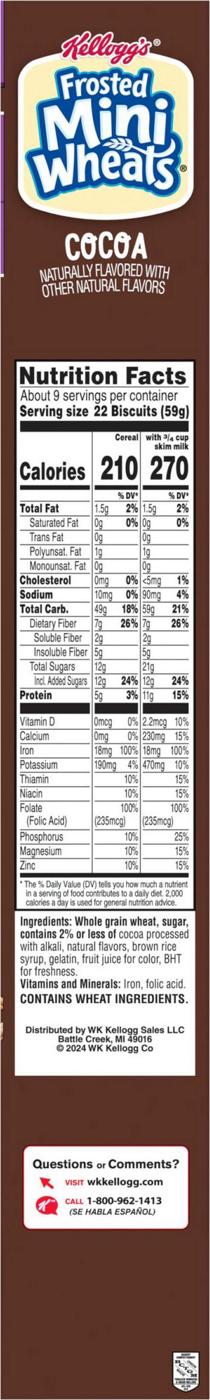 - Includes 1, 20oz family-size box of delicious Kellogg's Frosted Mini-Wheats Cocoa breakfast cereal; Packaged for freshness and great taste