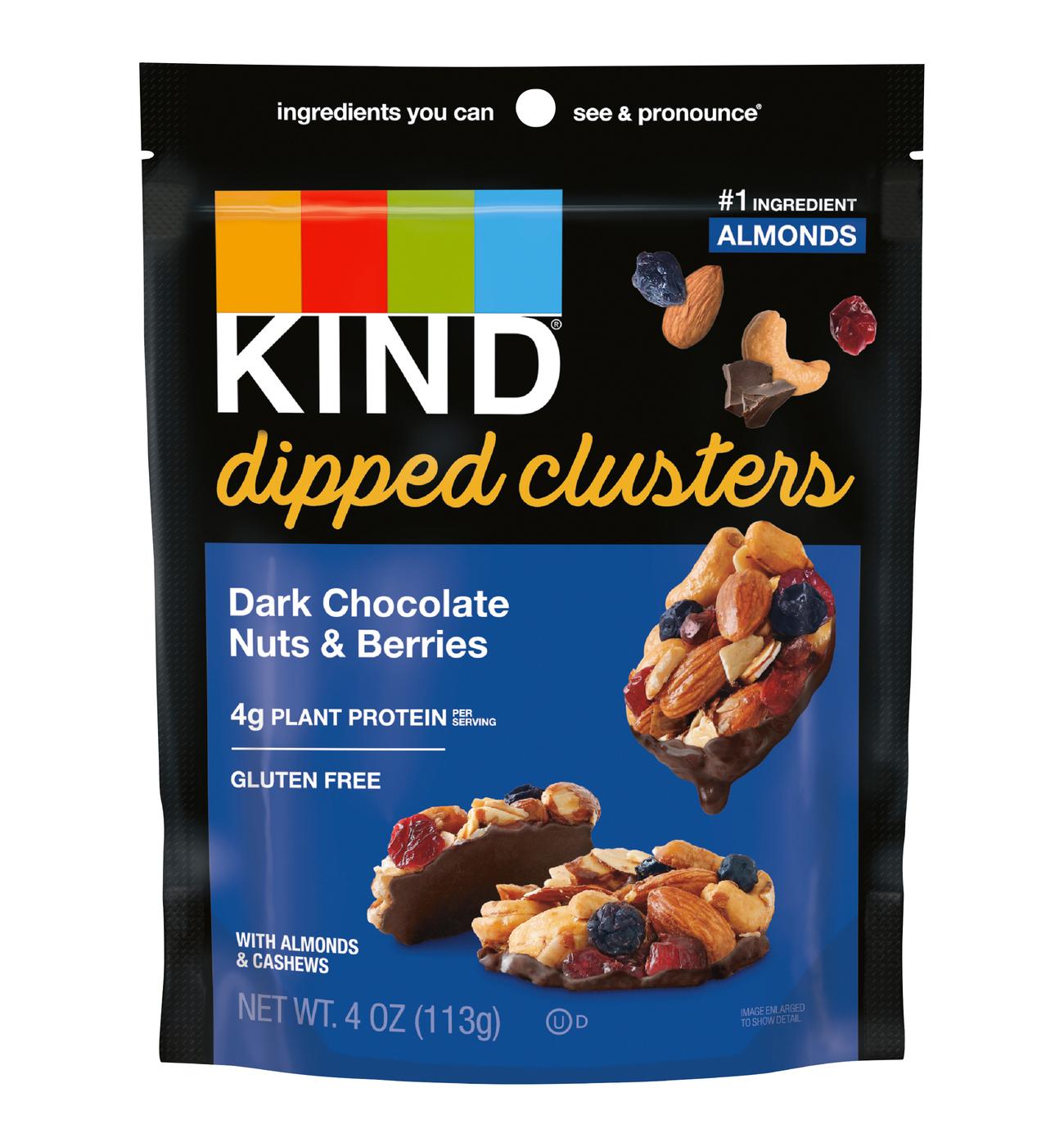 Kind Dark Chocolate Nuts And Berries Clusters, 4 oz. resealable bag
