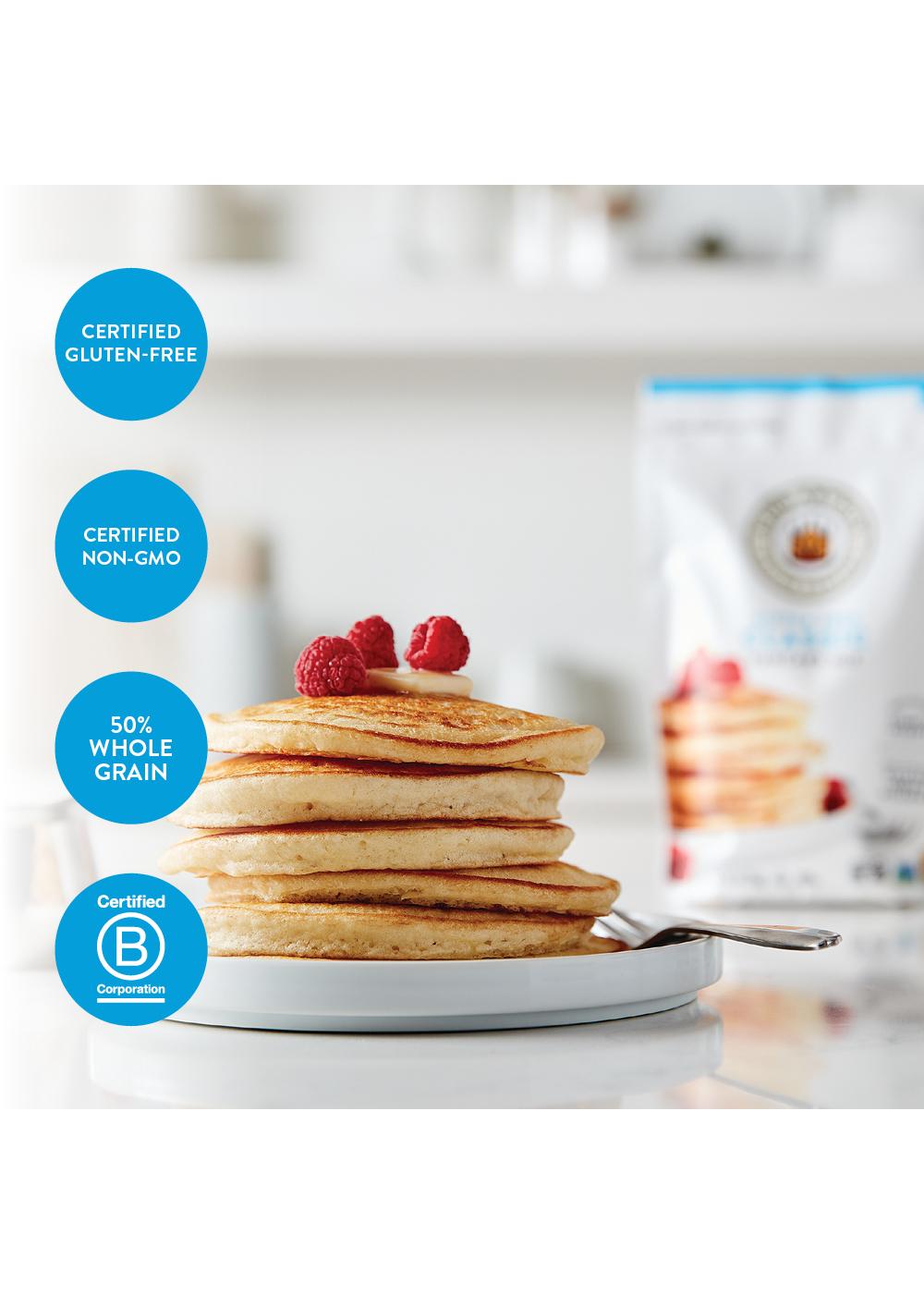 Better breakfasts ahead! Finally, a gluten-free pancake mix that's simple to prepare and tastes delicious. Keep your pantry stocked with King Arthur gluten-free mix. It's a weekend breakfast essential. Enjoy tender, fluffy pancakes (or waffles) at a moment's notice. They're great plain or dressed up with fresh fruit or chocolate chips. The convenient resealable bag makes it easy to portion just the right amount or take it on the go.
