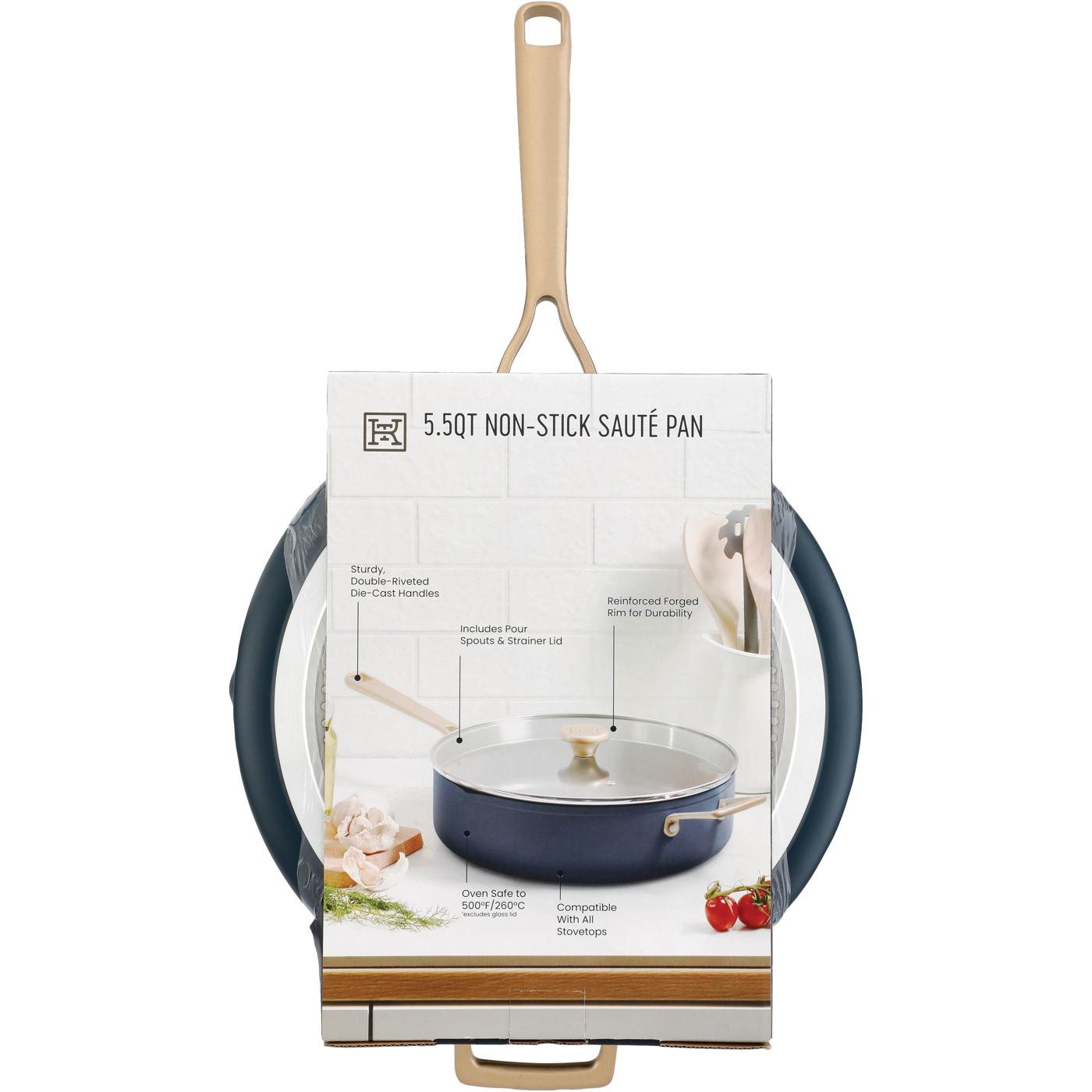 Add this versatile sauté pan and strainer lid from Kitchen & Table by H-E-B to your kitchen and streamline your cooking experience. Compatible with all stovetops and with a pan that is oven safe up to 500 degrees Fahrenheit, this sauté pan is what you need the next time you want to braise, poach, shallow-fry, sear or pan-fry a tasty meal. Durable, versatile and made without PFOA and PFOS, this sauté pan delivers long-lasting kitchen style and performance.