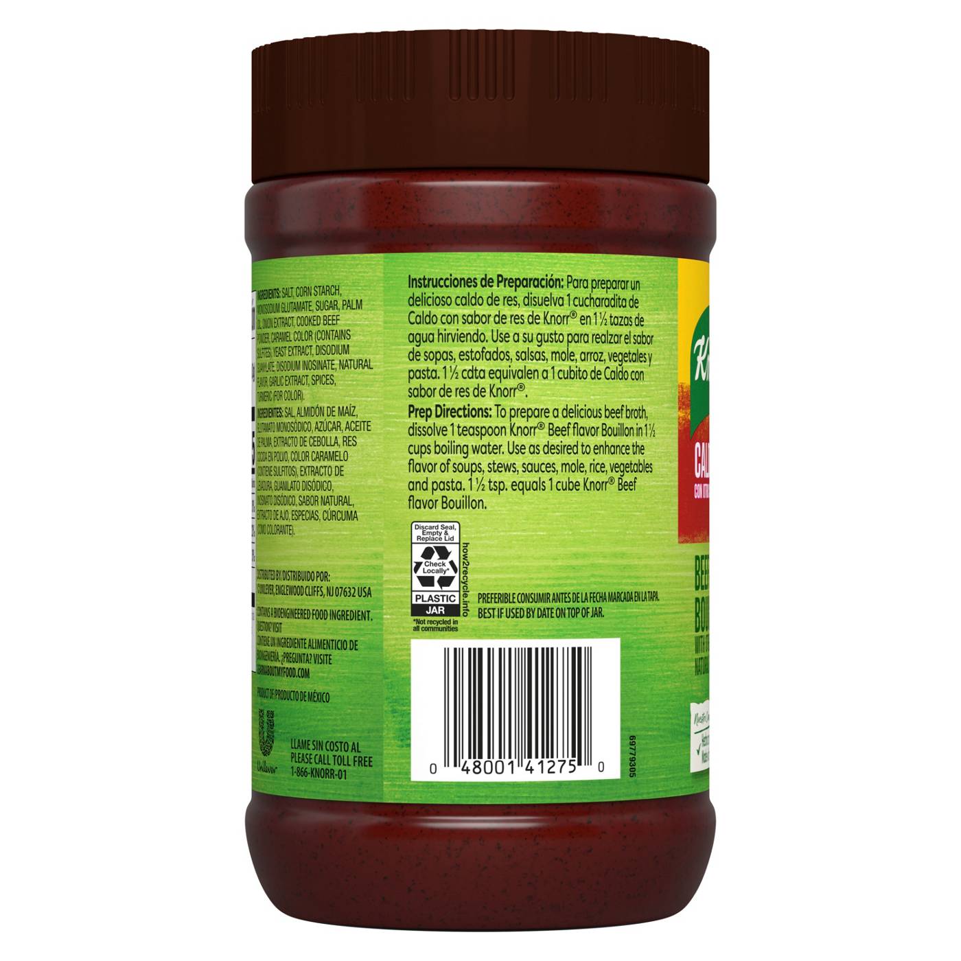 Knorr Granulated Beef Flavor Bouillon is a granulated mix blending flavors of beef, onion, parsley, and spices. Add the authentic Knorr flavor to all your beef dishes with this versatile product that is made with natural flavors and is fat free and cholesterol free. The Knorr Granulated Bouillon is an essential pantry item with everyday use. The granulated format allows for ultimate versatility for all your cooking needs. Granulated bouillon dissolves more quickly than cubes, and 1 tablespoon of granulated bouillon is the equivalent of 1 bouillon cube. Use Knorr Granulated Beef Flavor Bouillon to enhance flavor in any recipe, like the delicious Bistec de Res, as well as in other types of dishes like soups, stews, tacos, ground beef, and other beef dishes. Knorr Granulated Bouillon comes in additional sizes and great flavors including chicken, Tomato Chicken, Reduced Sodium Chicken, and Shrimp, so you can be sure to find the Latin flavors your family will love. Knorr believes that good food matters, and everyday meals can be just as magical as special occasions. The Knorr products owe their taste and flavors to the culinary skills and passion of its chefs. Knorr sources high-quality ingredients to create delicious side dishes, bouillons, sauces, gravies, soups and seasonings enjoyed by families everywhere.