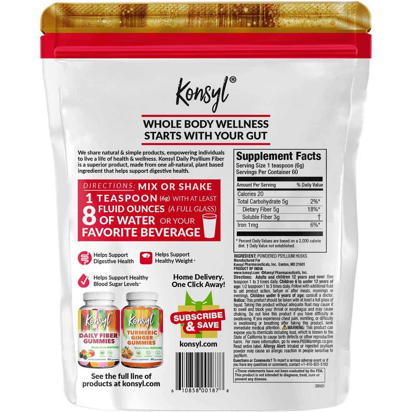 Warning: This product can expose you to chemicals including lead, which is known to the State of California to cause birth defects or other reproductive harm. For more information, go to www.P65Warnings.ca.gov. Read entire label.,Notice: This product should be taken at least a full glass of liquid. Taking this product without adequate liquid may cause it to swell and block your throat or esophagus and may cause choking. Do not take this product if you have difficulty in swallowing. If you experience chest pain, vomiting, or difficulty in swallowing or breathing after taking this product, seek immediate medical attention. Allergy Alert: Inhaled or ingested psyllium powder may cause an allergic reaction in people sensitive to psyllium.