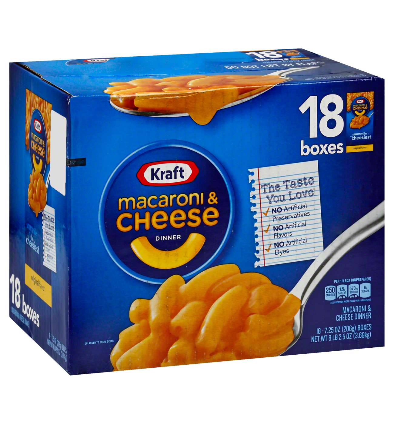 Kraft Macaroni & Cheese Dinner, 18 Boxes