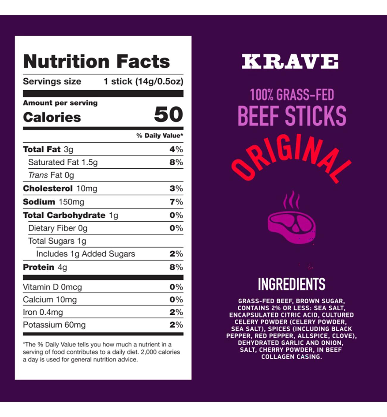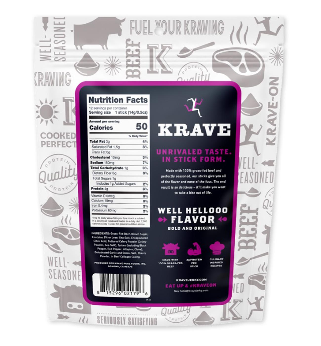 Made with 100% grass-fed beef, KRAVE sticks are protein-packed and seasoned for maximum flavor. Give them a try for all of the bold taste and none of the fuss.