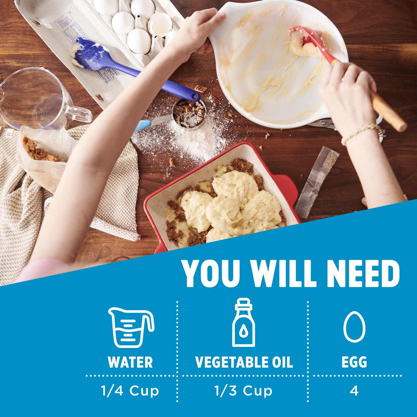 Cake Mix: Sugar, Whole Grain Sorghum Flour, Whole Grain Millet Flour, Food Starch Modified, Soybean Oil, Arabic Gum, Leavening (Baking Soda, Sodium Aluminum Phosphate, Monocalcium Phosphate), Salt, Tapioca Starch, Guar Gum, Xanthan Gum, Natural Flavor Topping: Sugar, Palm and Soybean Oil, Brown Sugar, Cinnamon, Salt, Silicon Dioxide (Anticaking Agent), Natural Flavor.Allergens and safety warnings