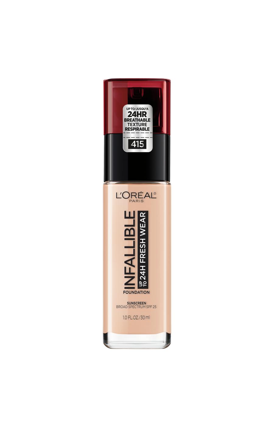 Discover a fresh and flawless look with L'Oréal Paris Infallible 24 Hour Fresh Wear Foundation in Rose Ivory. This foundation provides long-lasting, buildable coverage with a comfortable, lightweight feel. Its breathable formula delivers a natural finish that is designed for all-day wear.• Provides up to 24 hours of fresh, long-lasting wear• Formulated with broad-spectrum SPF 25 sun protection• Transfer-resistant and sweat-resistant formula• Offers buildable medium-to-full coverage
