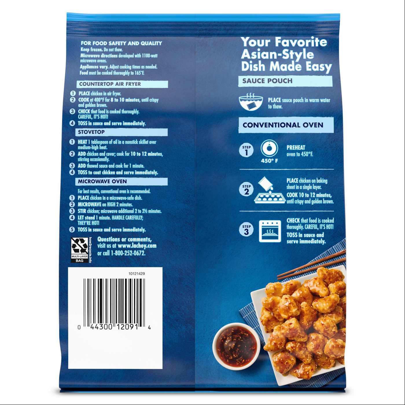 Enjoy your favorite Asian-inspired dishes in the comfort of your own home with La Choy General Tso's Chicken. Easily prepare tempura white meat chicken with a sweet and slightly spicy General Tso's sauce pouch in the air fryer, oven or microwave or on the stove for a quick and convenient entrée for your family dinner meal. This La Choy frozen entrée has 13 grams of protein per serving, no artificial flavors and no added MSG* so you can indulge with confidence. Bring a little bit of Asian flavor into your kitchen with this delicious General Tso's chicken for an easy meal the whole family is sure to love.