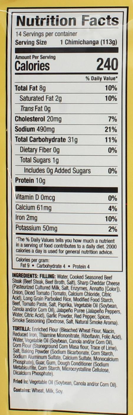 Serving Size1.00 chimichanga- Amount Per ServingCalories250