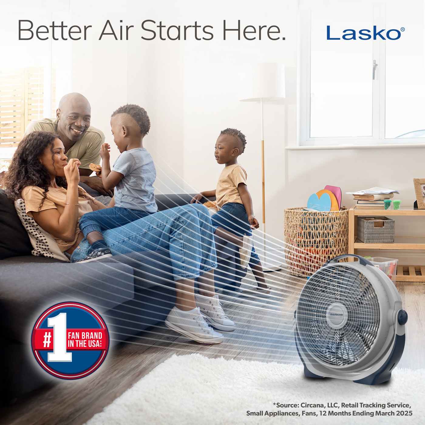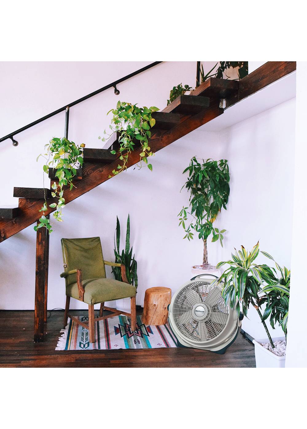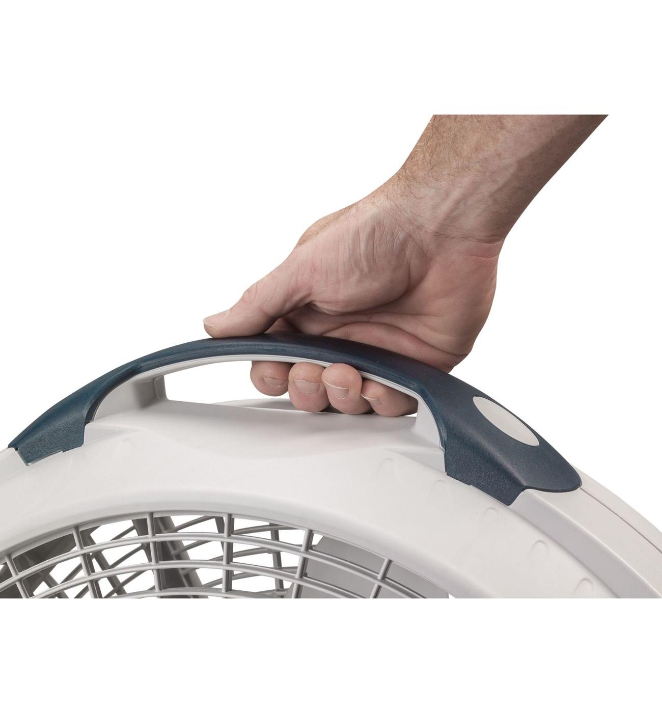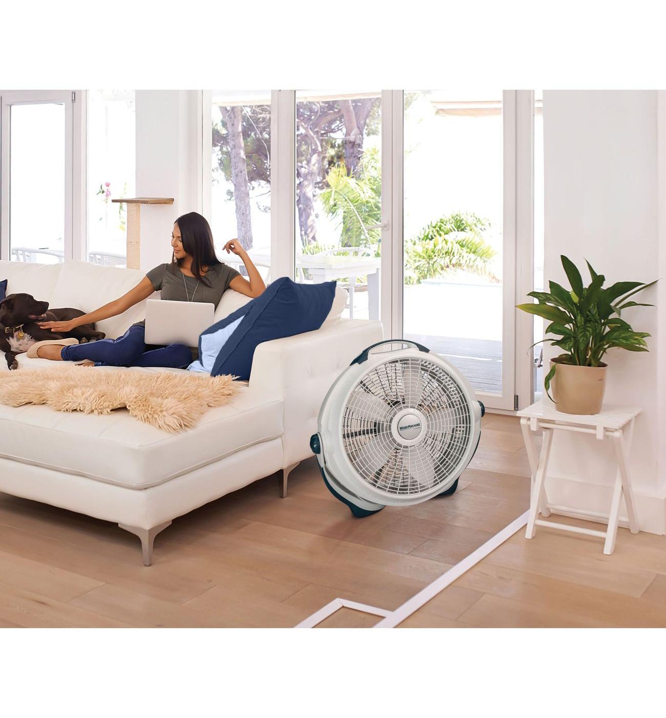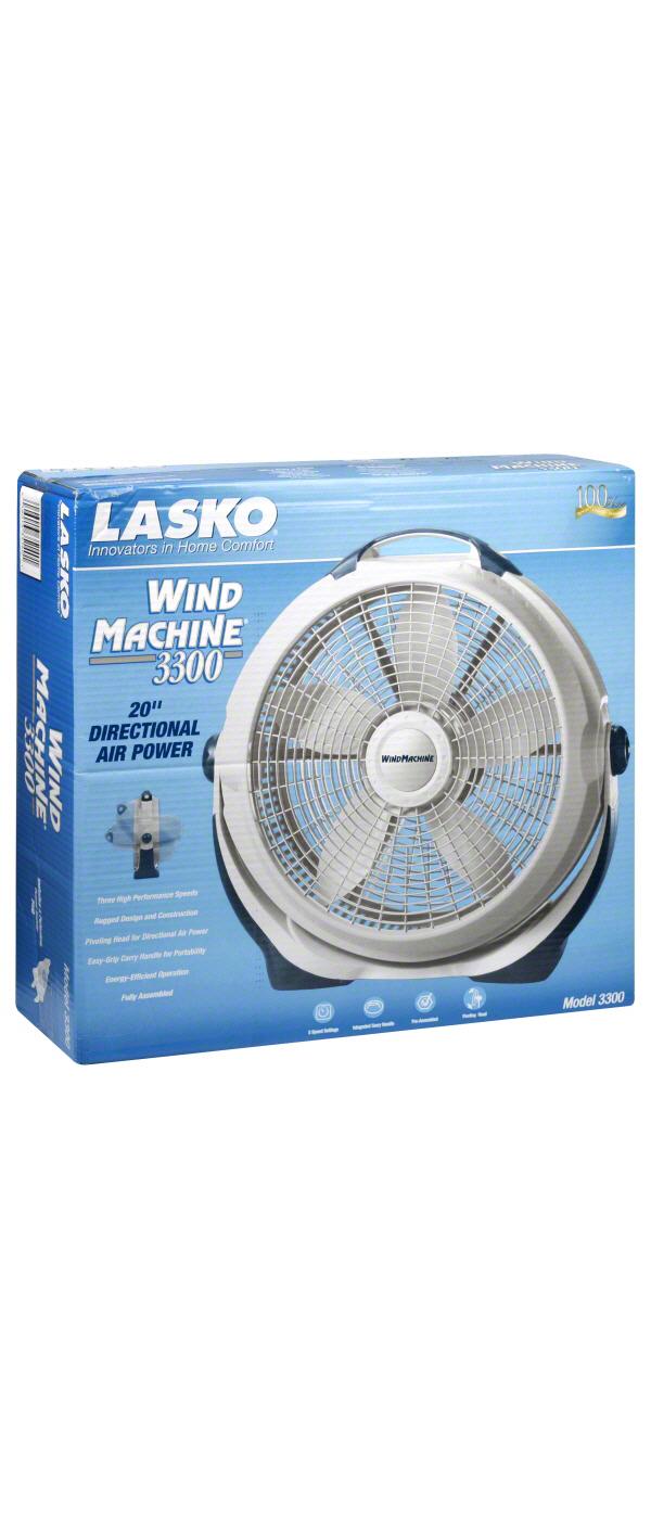 The Lasko Wind Machine 20" Pivoting Air Circulator Floor Fan offers 3 high-performance speeds to keep you cool and comfortable. Its pivoting fan head allows you to direct the airflow from floor to ceiling, while the sturdy, built-in carry handle makes it easy to move this powerful fan from room to room. Ideal for circulating air conditioning, exhausting stale air, and bringing in fresh air, this energy-efficient fan is perfect for use in large living spaces, workshops, and more. Backed by a 1-year limited warranty and equipped with Lasko's trusted, fused safety plug, this fully assembled fan in a sleek gray finish is built to last.